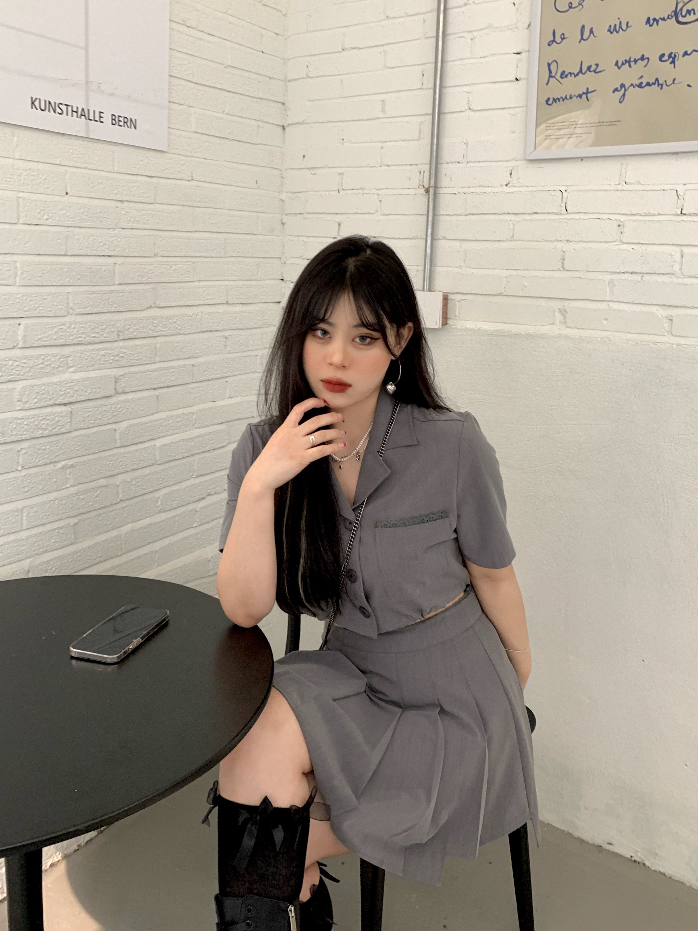 Kurosawa Xuan seven micro fat mm2021 new high waist slim short sleeve suit jacket pleated skirt suit female