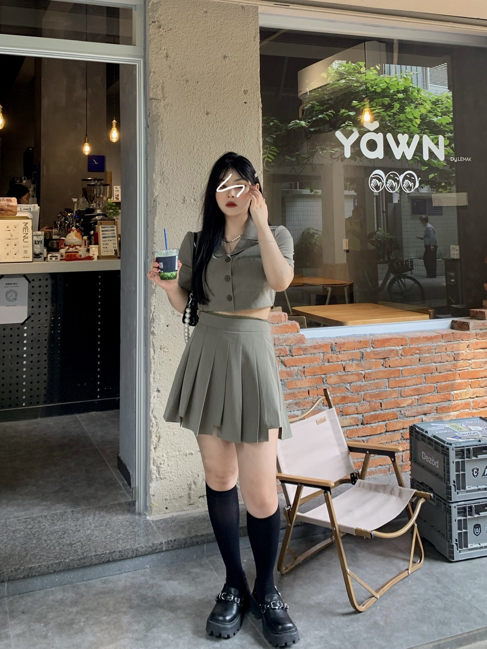 Grey blouse army green blouse gray overskirt army green overskirt