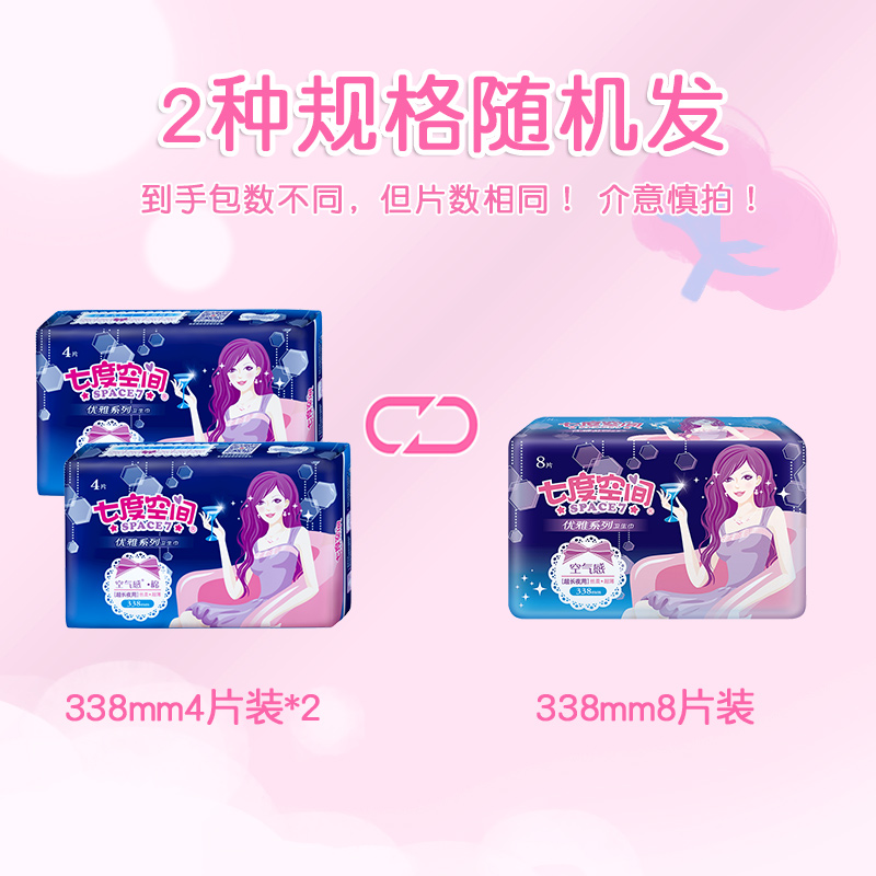 Seven degrees of space elegant series ultra-thin cotton ultra-long night with 338mm aunt towel sanitary napkins 24 pieces