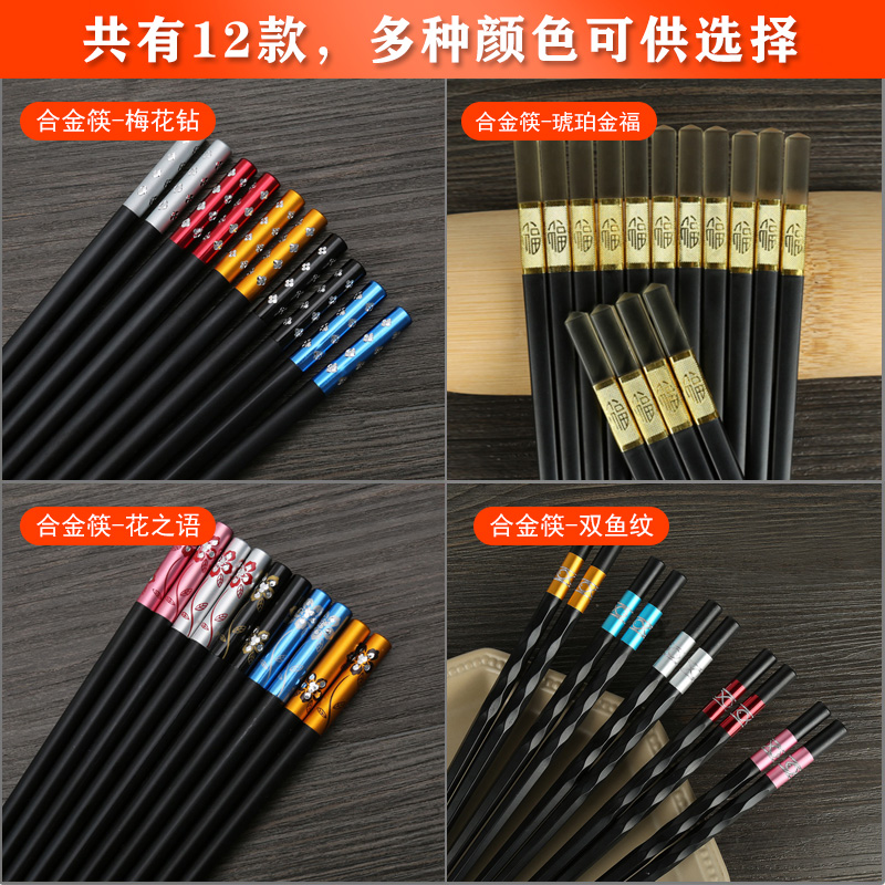 Chopsticks Domestic Anti-Mold Alloy Chopsticks Public Chopsticks Commercial Chopsticks Quick Double Fit Non-slip High Temperature Resistant Family Cutlery Portable