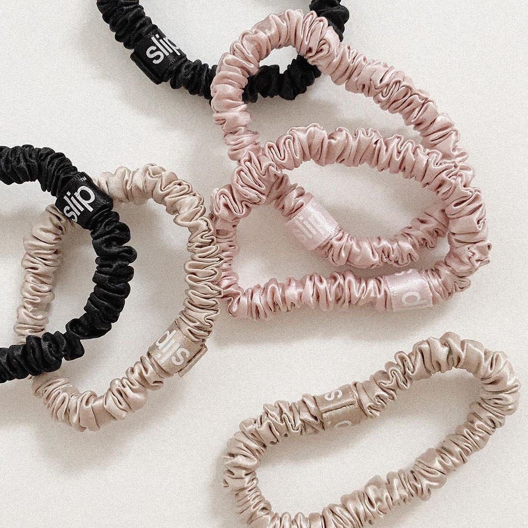 Slip silk hair rope head rope desert rose large intestine hair ring pink black champagne six pieces three sets of large, medium and small