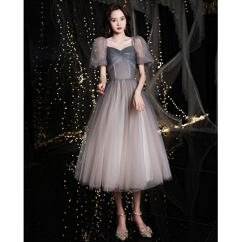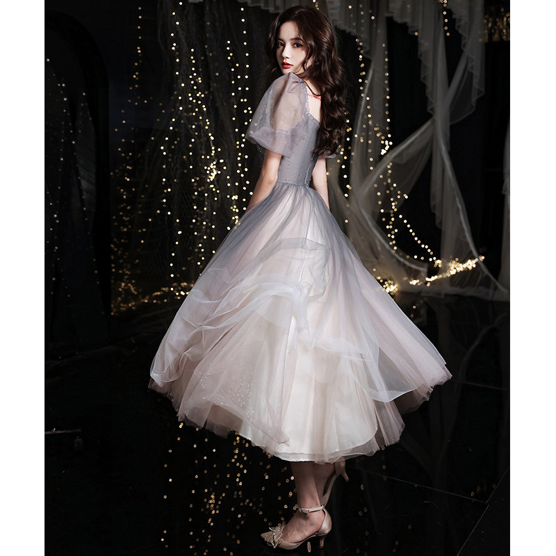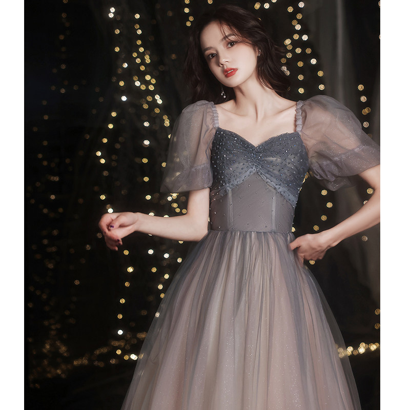 Annual meeting evening gown 2021 new grey light extravagant high-end small crowdlaw banquets small birthday gown dresses