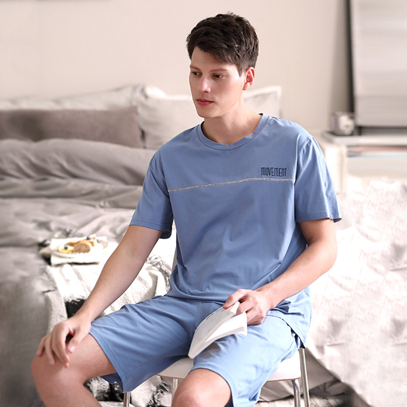 Darley pajamas men's summer pure cotton short-sleeved shorts thin round neck pullover 2021 new men's home clothes