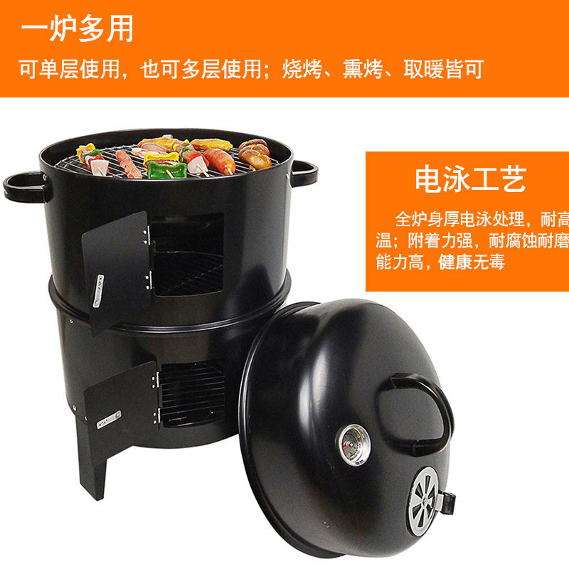 Outdoor barbecue grill Charcoal household stove Smoke stove Outdoor barbecue double-layer barbecue grill thickened skewer stove