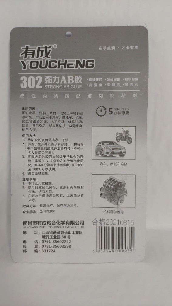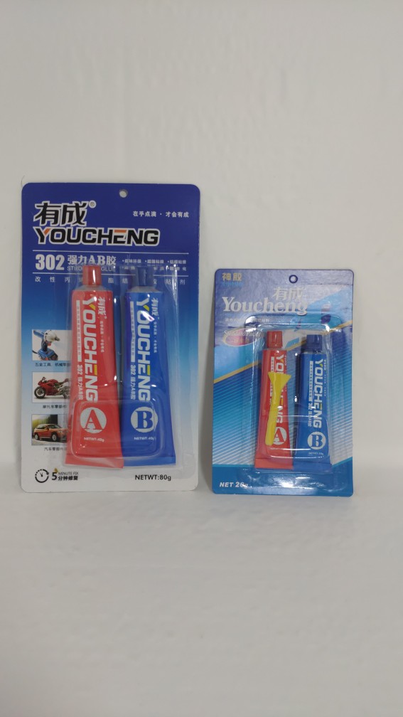 There is 302 strong AB glue 20 grams 1 group with 302 strong AB rubber 80 grams 1 group