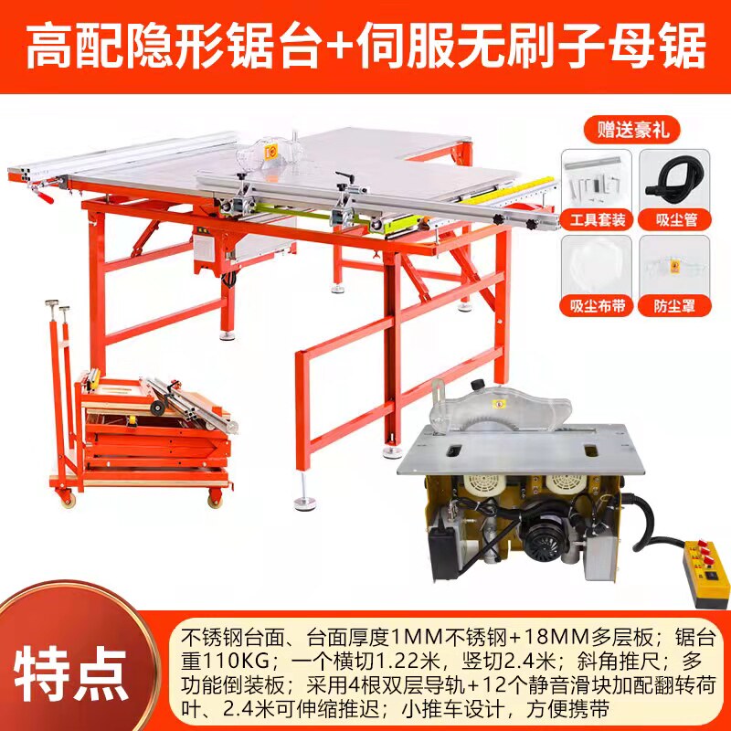 Dust-free primary-secondary saw wood pushing table saw integrated precision push table cutting board saw furniture folding and silent dust-free primary and secondary saw