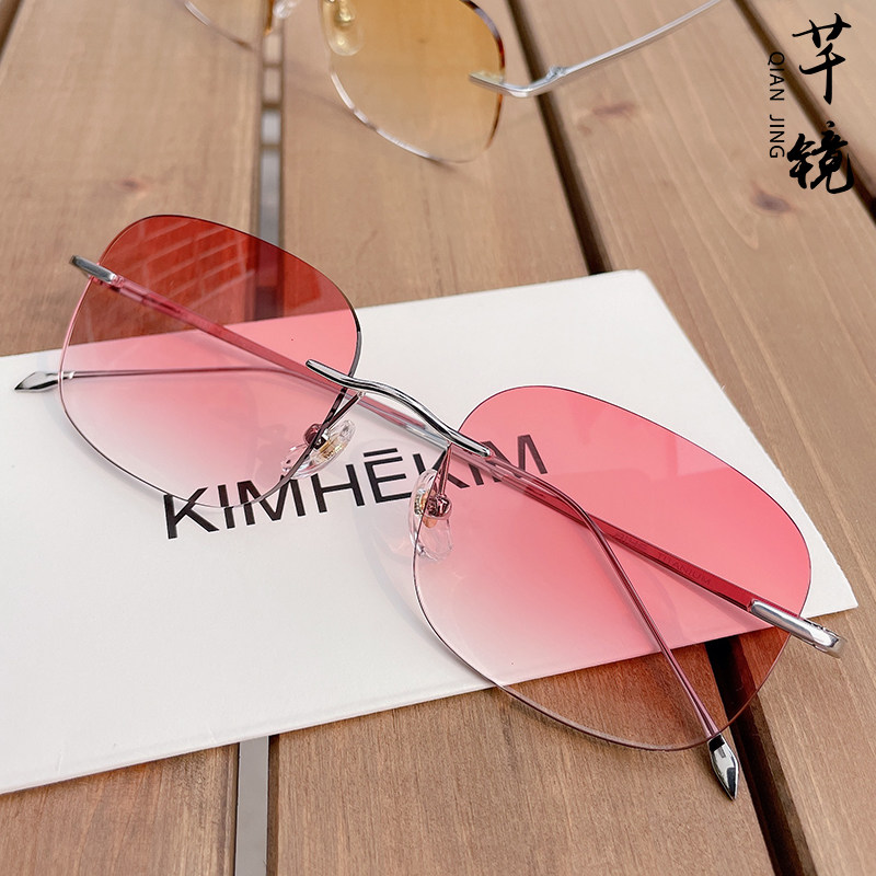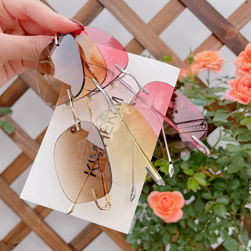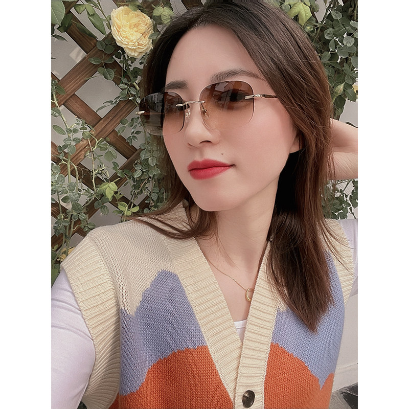 Pure Titanium Myopia Sunglasses Female Ultralight without frame Diamond cut edge Custom Fit degree Anti UV Driving sunglasses