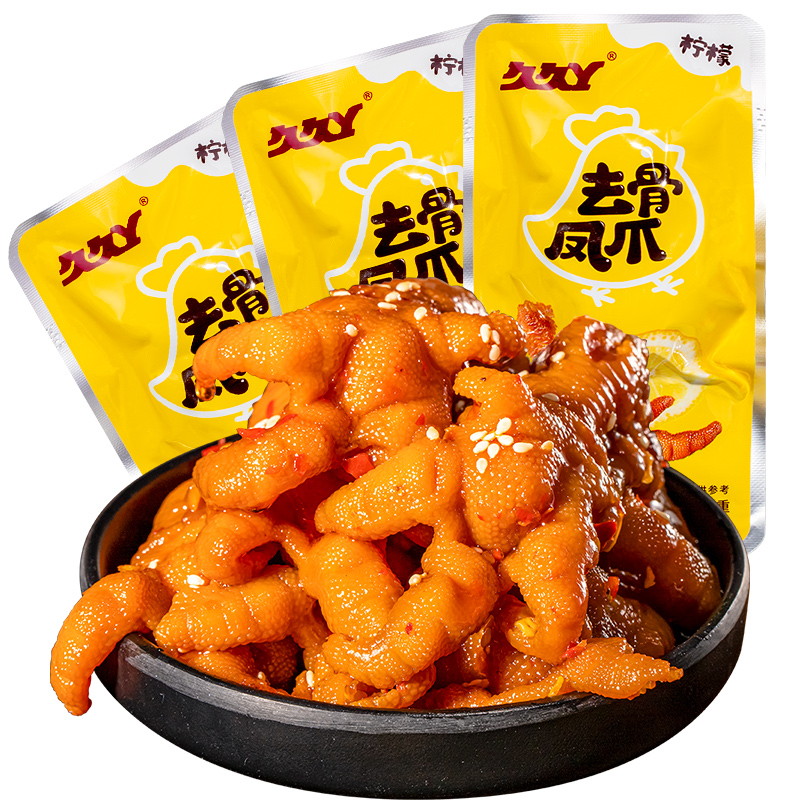 Jiujiuya lemon flavor boneless chicken feet hot and sour flavor boneless chicken feet small package soaked chicken feet snacks