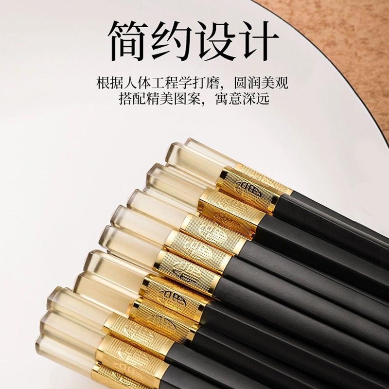 High-end alloy chopsticks domestic solid wood anti-mould and anti-deformation fast sub 10 double suit upscale chopsticks