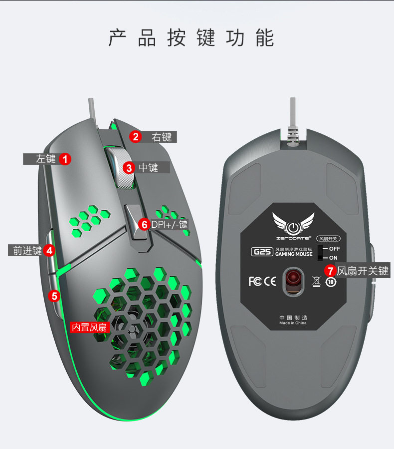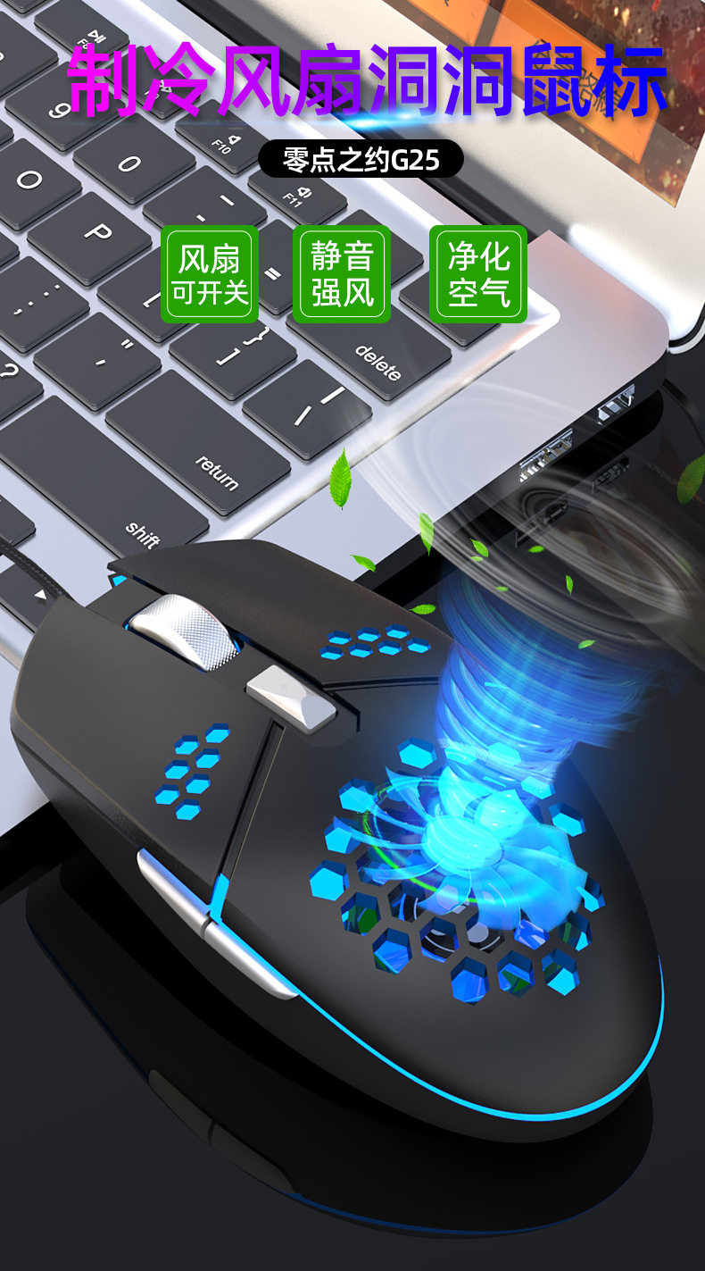 Zero point about g25 fan slide mouse refrigeration heat dissipation wired game electric race hole seven color light suction lamp photoelectric