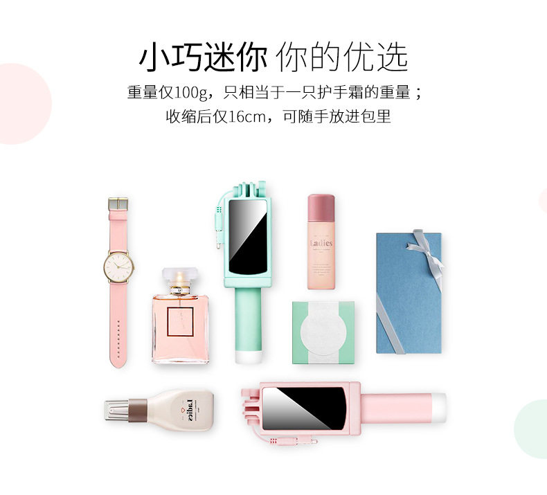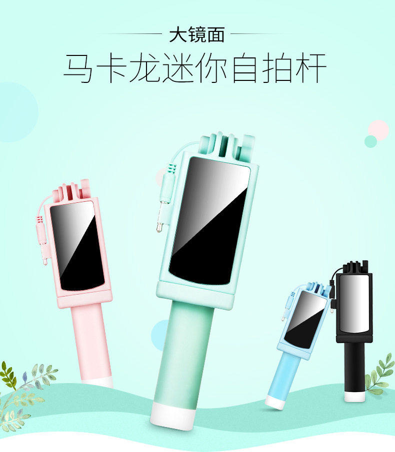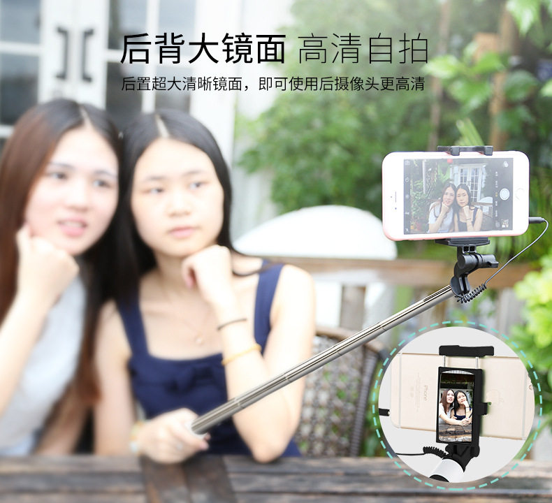 Mobile phone selfie stick live broadcast bracket all-in-one photo artifact beauty stick selfie artifact wire-controlled small mirror universal