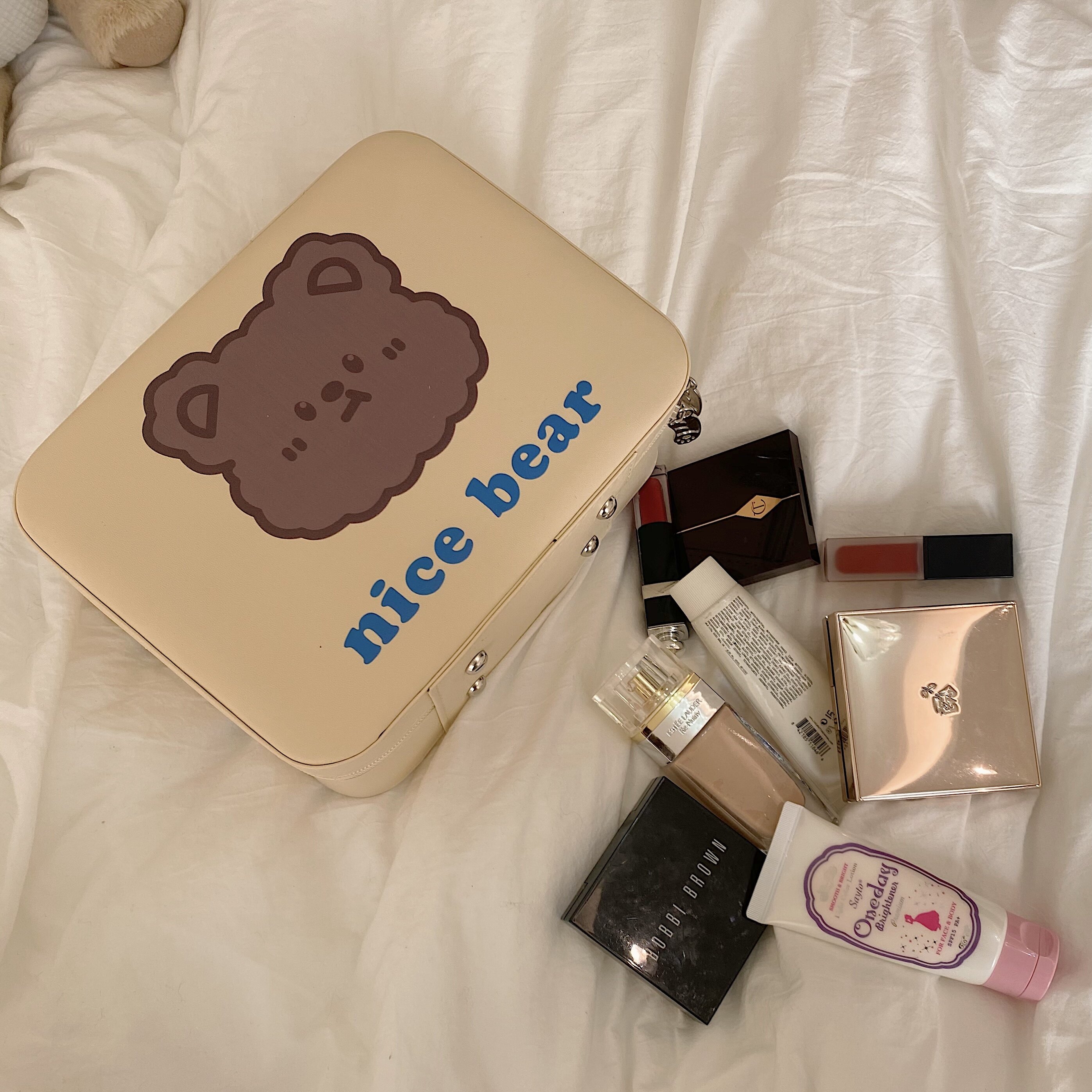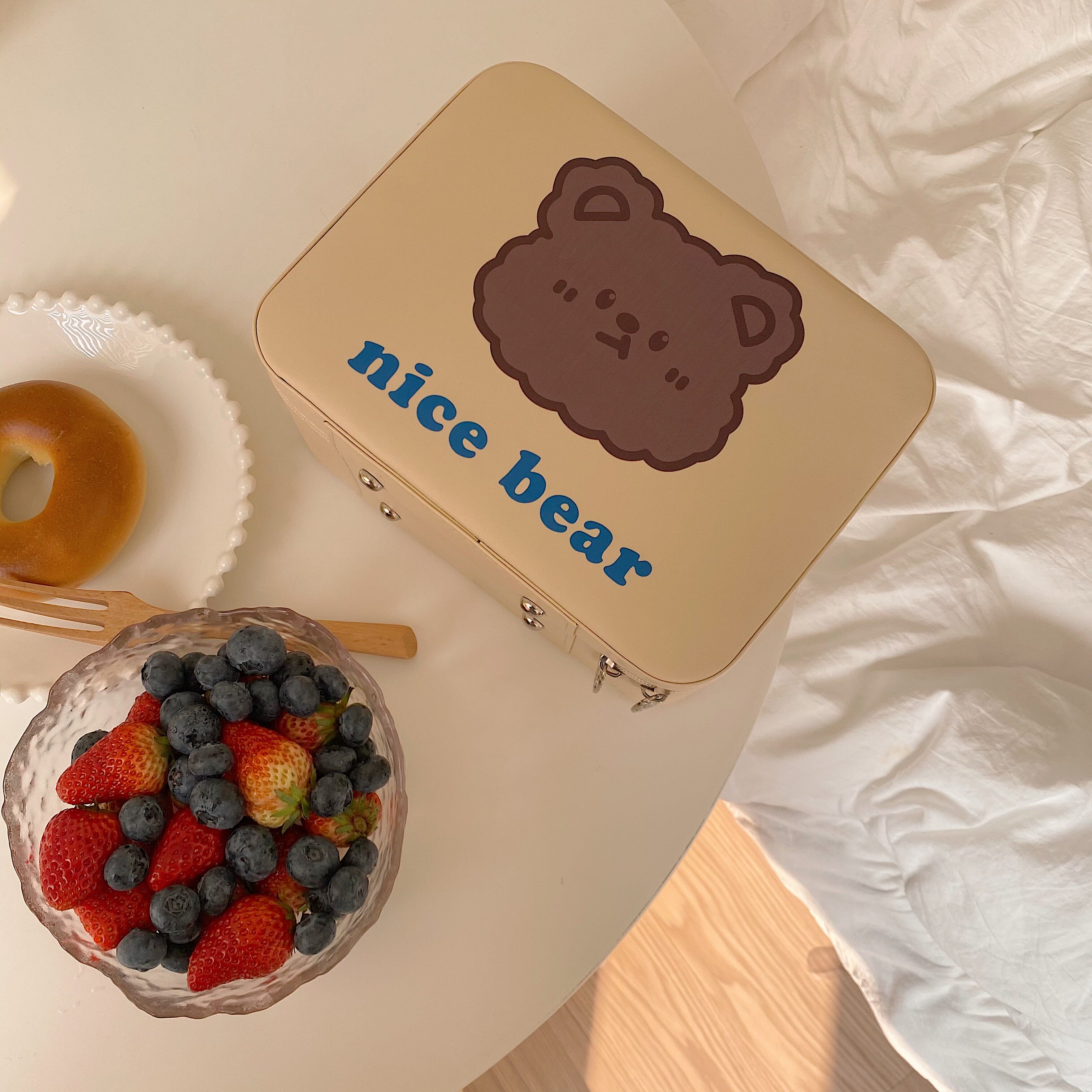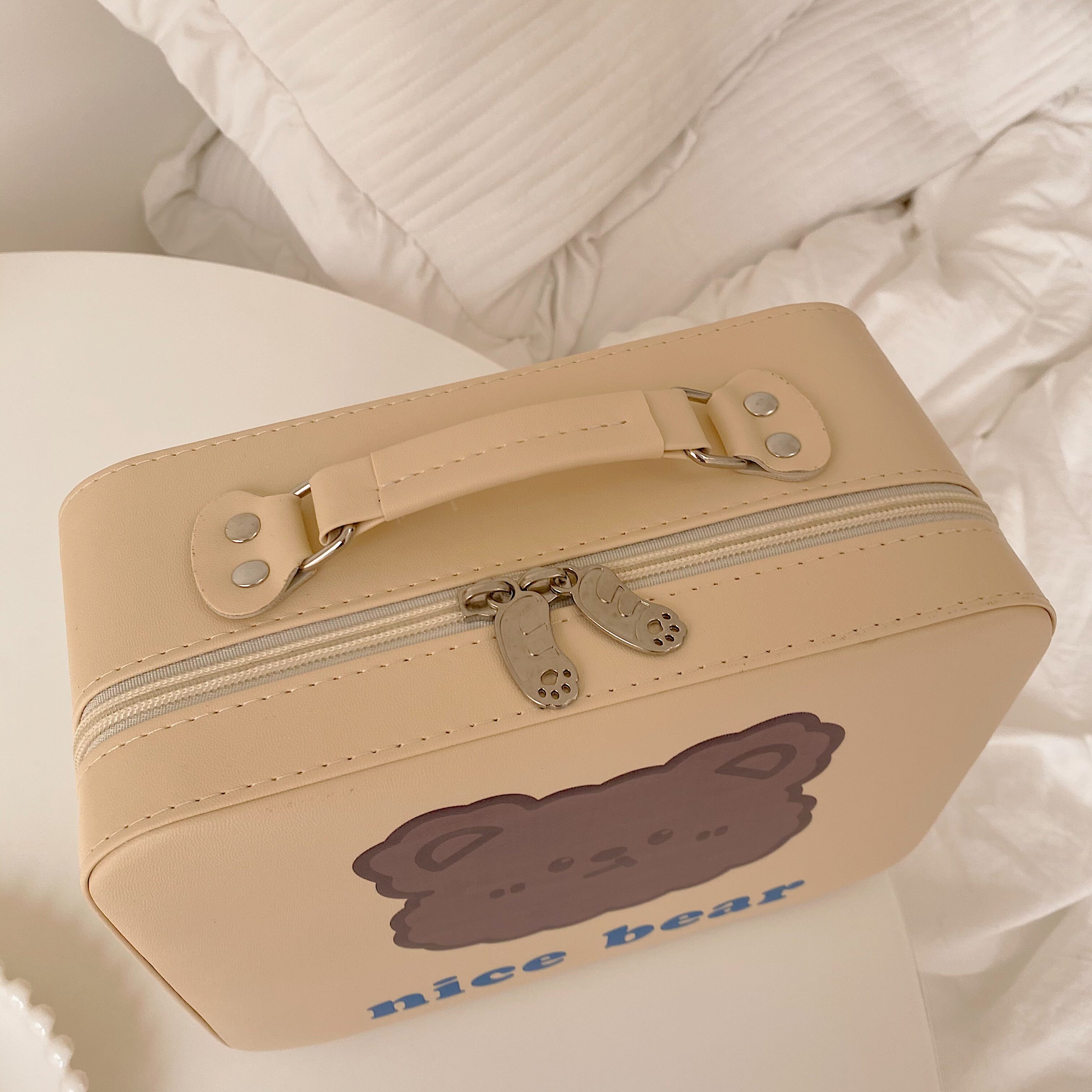 Original subsection Ins wind large capacity containing box rice yellow gentle and cute little bear portable makeup case makeup bag