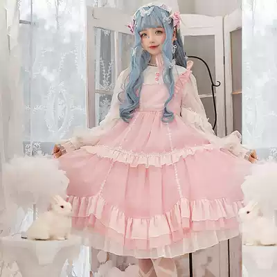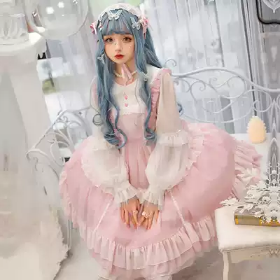 Original design lolita"Starry night insomnia "fairy pink blue sweet princess one-piece dress long-sleeved lolita