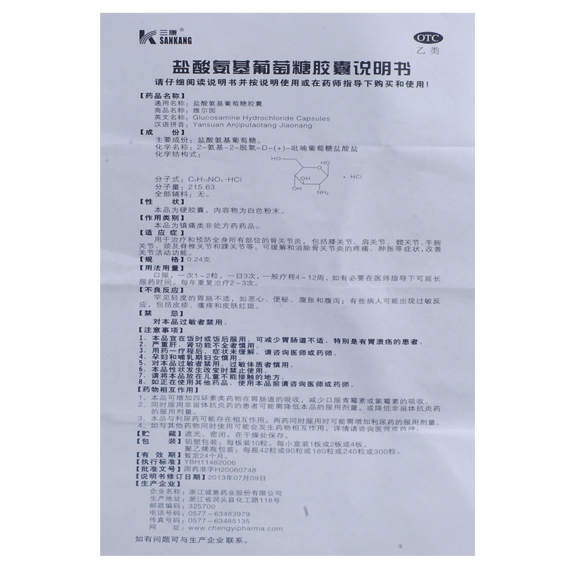 Nearly effective period Sankang hydrochloric acid glucosamine capsules 0 24g * 40 tablets for treatment and prevention of systemic osteoarthritis