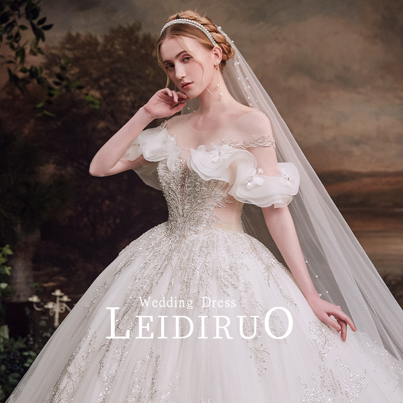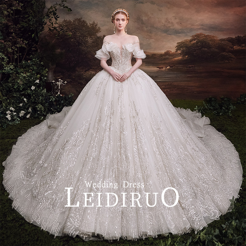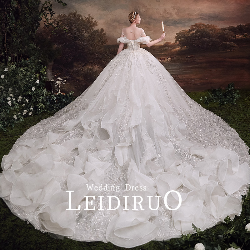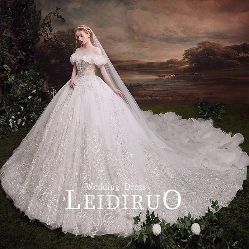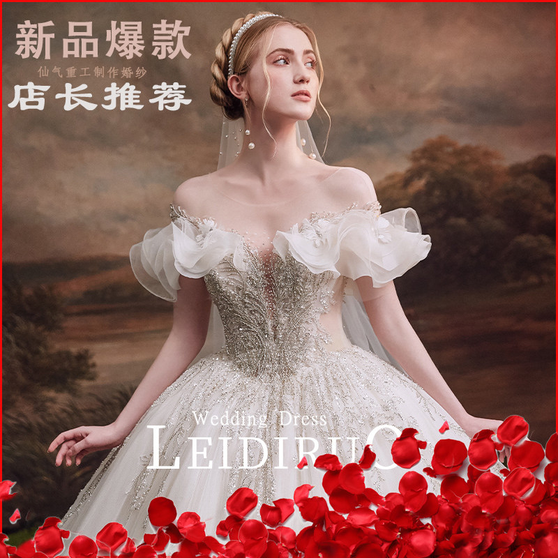"Han Han" shoulder French main wedding dress 2021 new bride tailed dress gauze Summer Palace Style Female