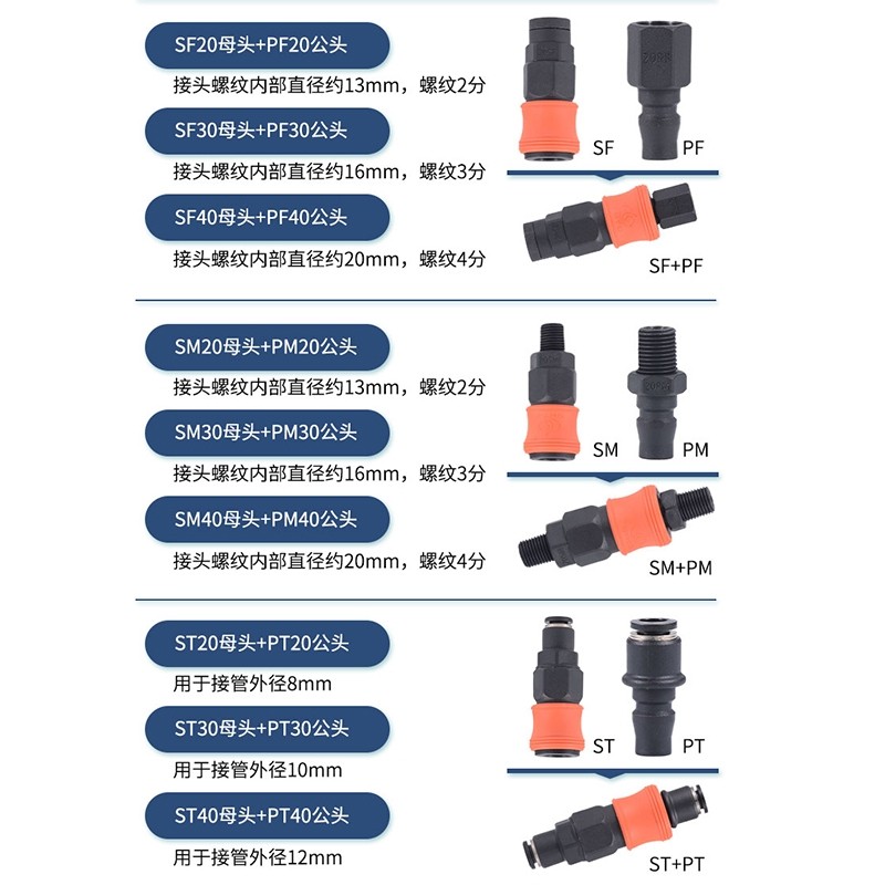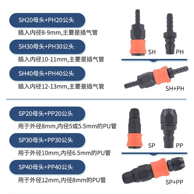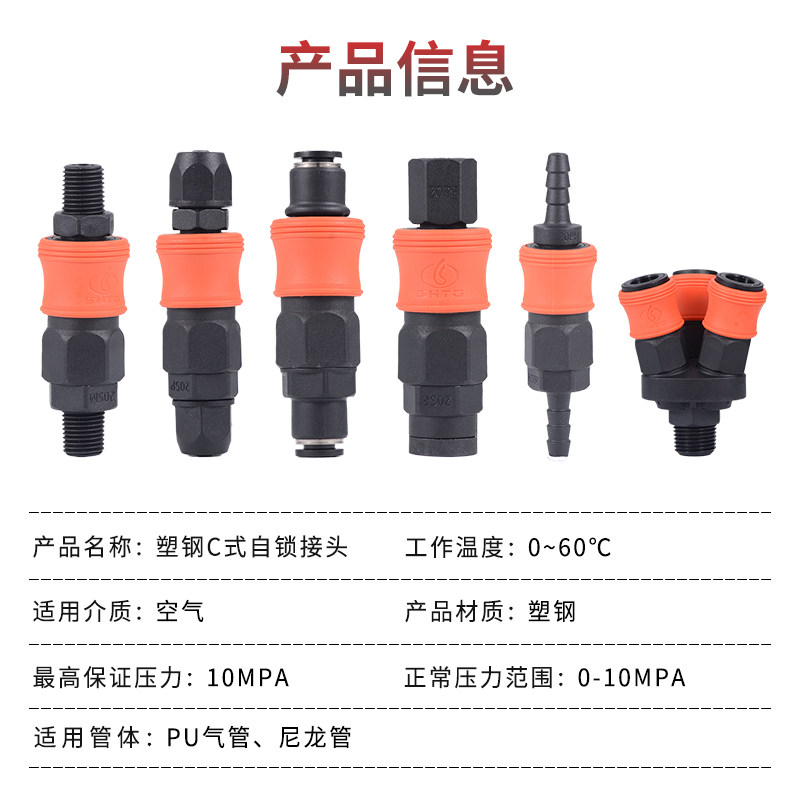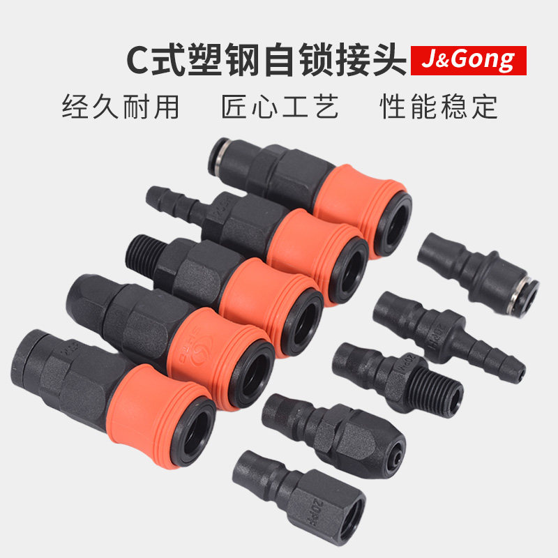 Plastic steel self-locking c-type quick connector trachea air gun air pipe air pump air compressor male and female head pneumatic two-way three-way