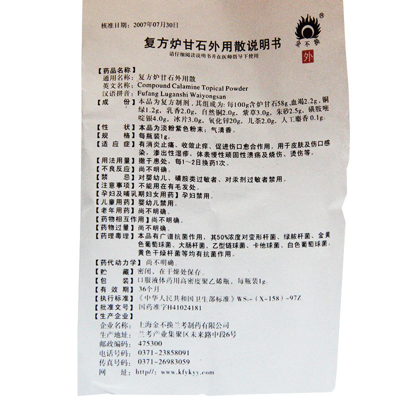 Gold Unchanging Compound Furnace Gganshi External 1g * 1 bottle box convergent anti-itching skin and wound infection Exudative Eczema Body Watches Chronic Recalcitrant Ulcer Burn Scalds