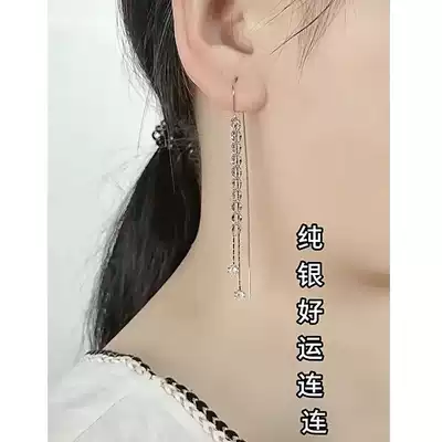 s925 sterling silver earrings European and American long version of interlocking temperament tassel Fashion Net red ear decoration 2021 New Tide