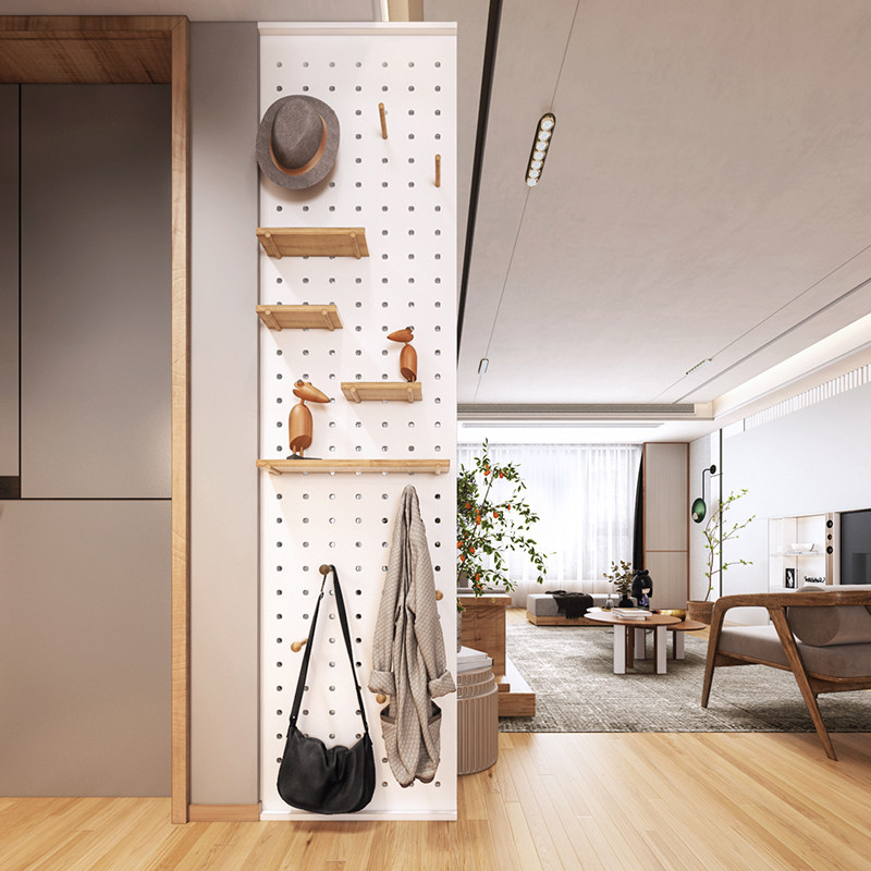 Solid wood Japanese-style screen partition Nordic living room decoration modern and simple entrance porch column hole board shelf