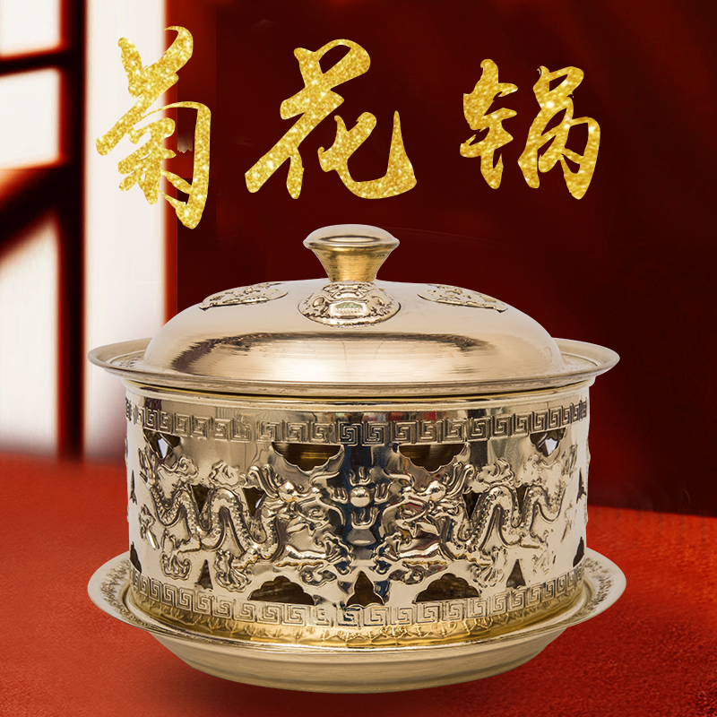 Copper Hot Pot Pure Copper Thickened Old Palace Imperial Pot Alcohol Pot Chrysanthemum Pot Pot Mongolian Milk Tea Pot Stewed Vegetable Pot