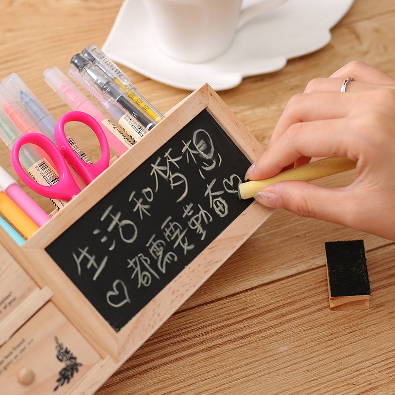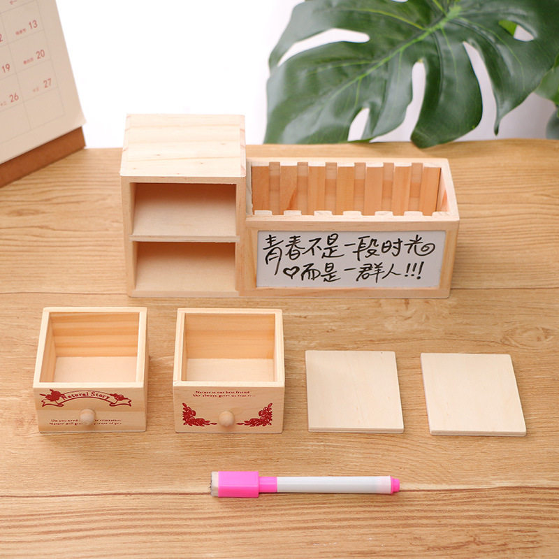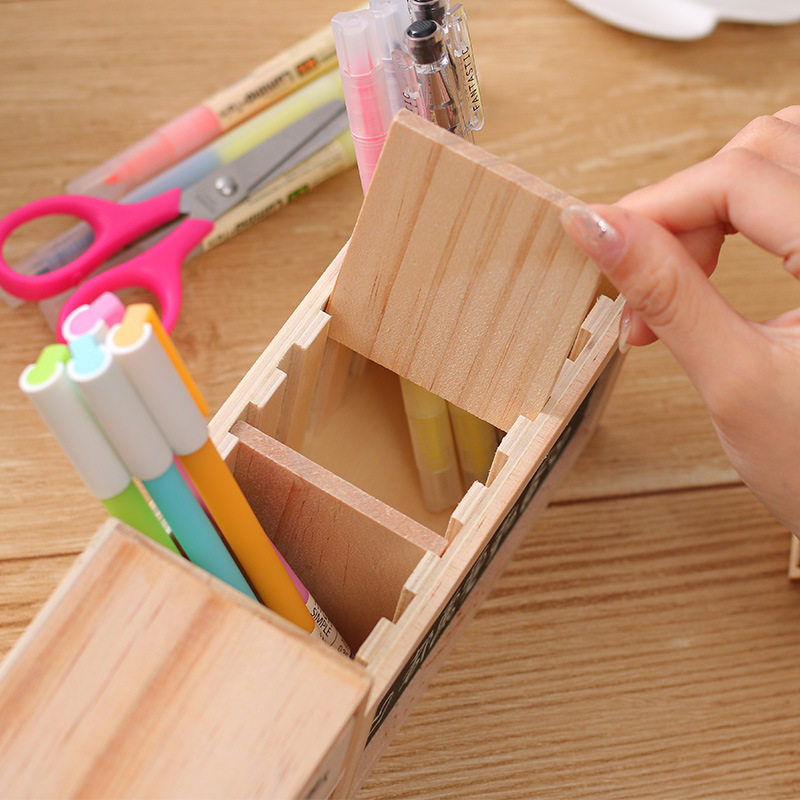 Small weekend wooden creative pen holder for boys and girls simple modern children's office desktop student stationery storage box