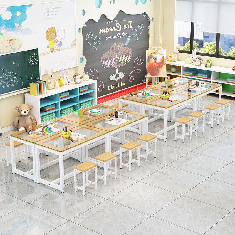 Art table painting table kindergarten learning table and chair training institution splicing conference table tutorial class studio table and chair