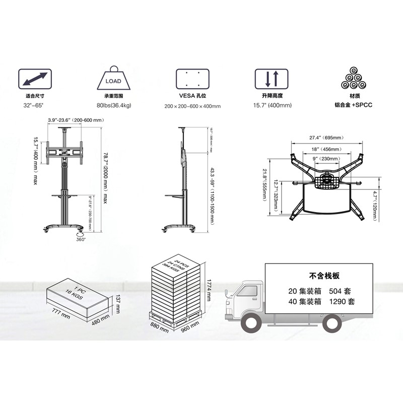 High-end TV mobile cart Floor height bracket Touch screen All55 65 75 86 100 inches