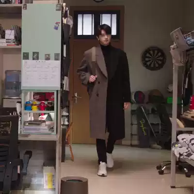 Liangchen beautiful scenery good time Guanglujing same coat long version coat splicing color personality hairy trench coat men Korean version