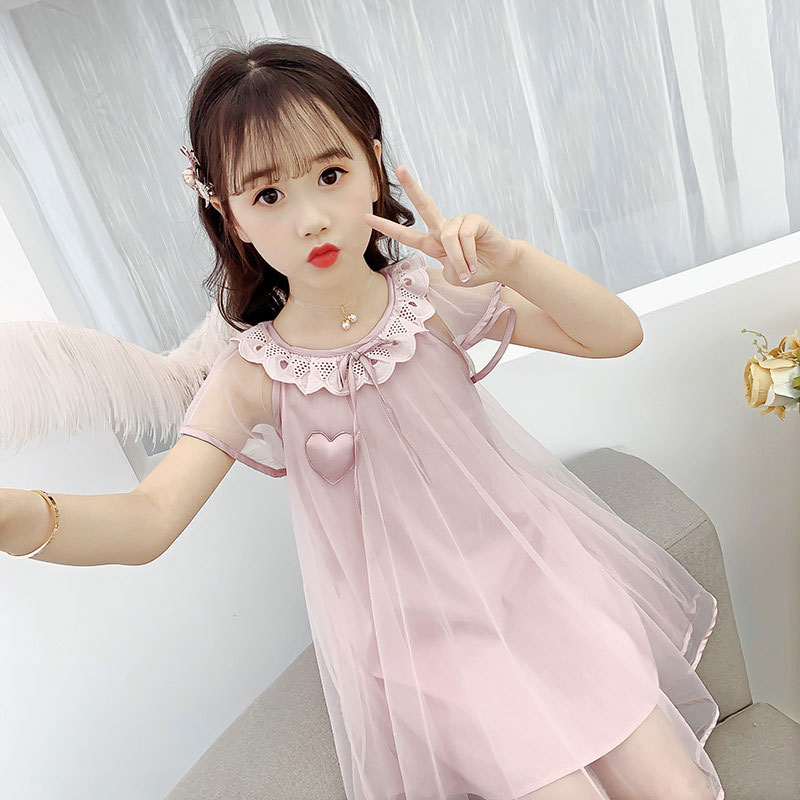 Korean girls summer dress 2021 new children's foreign princess dress big virgin girl summer mesh skirt