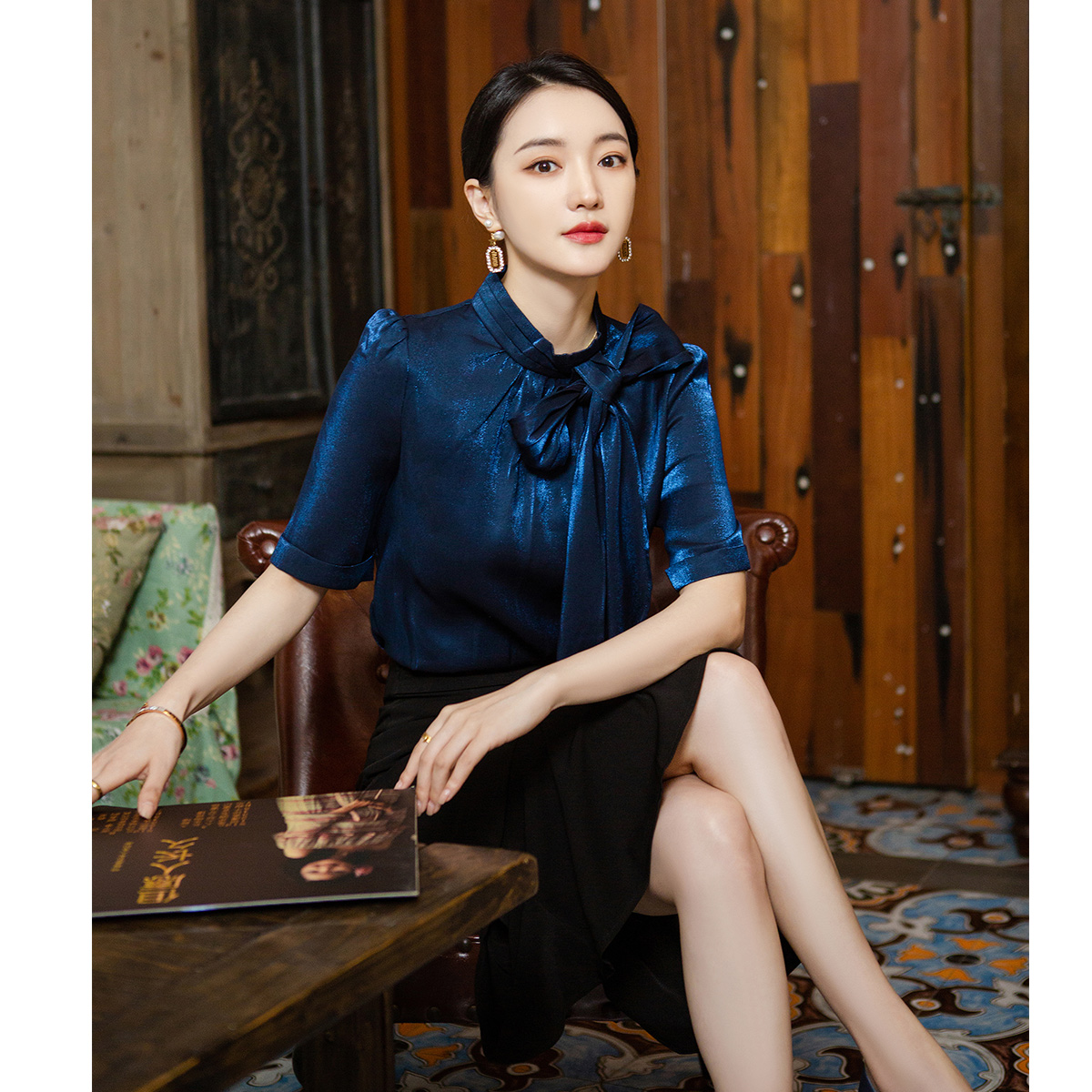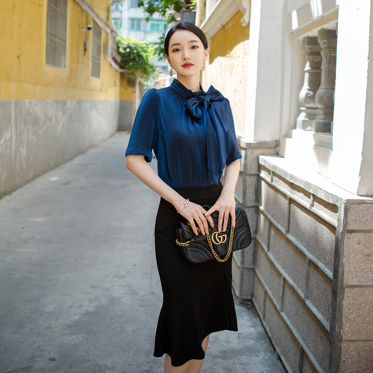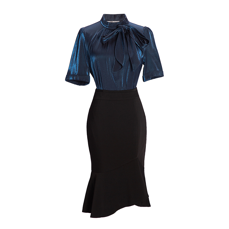 Zhang Nianen custom bright starry sky French bow shirt fishtail skirt slim short-sleeved office suit suit skirt