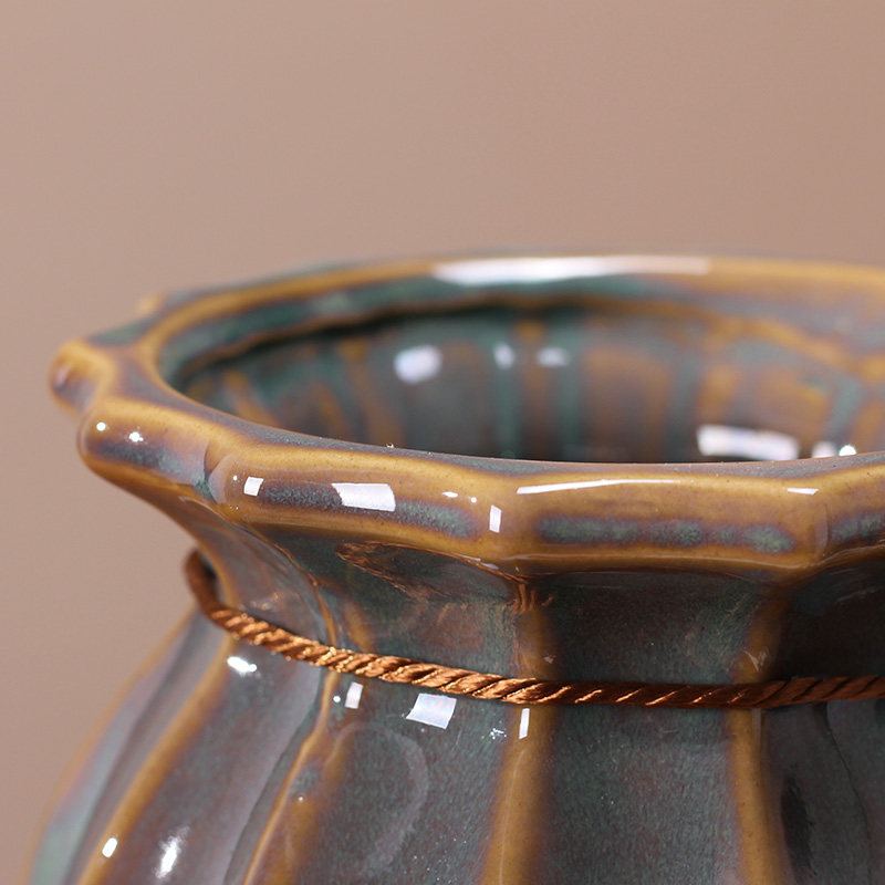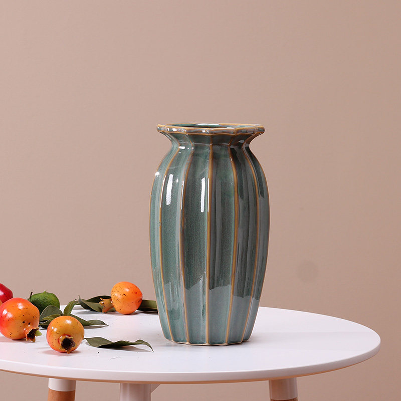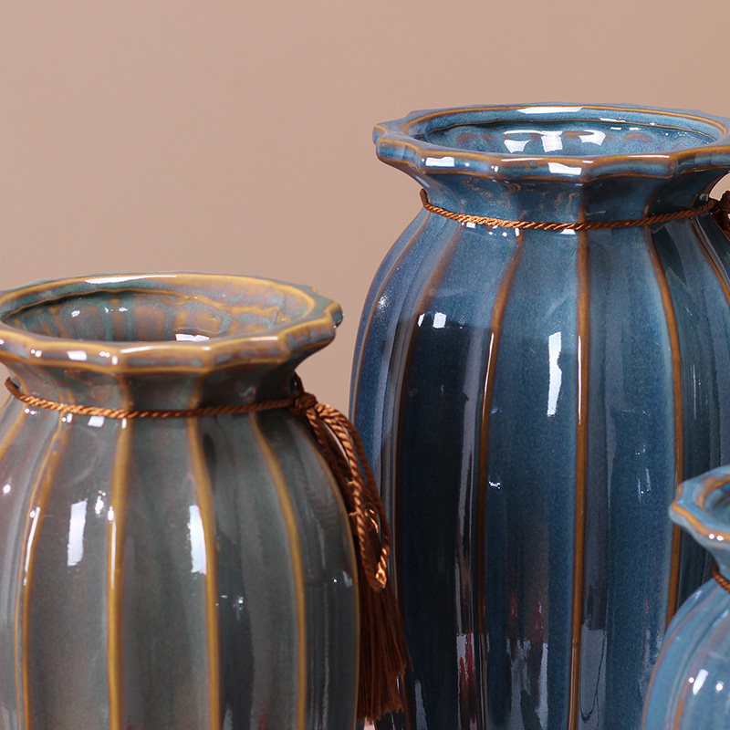 Yongyue Home Swing Accessories Ceramic Vase Exposure Vertical Stripe Blue New Chinese Table Face Decoration Furnishing Floral
