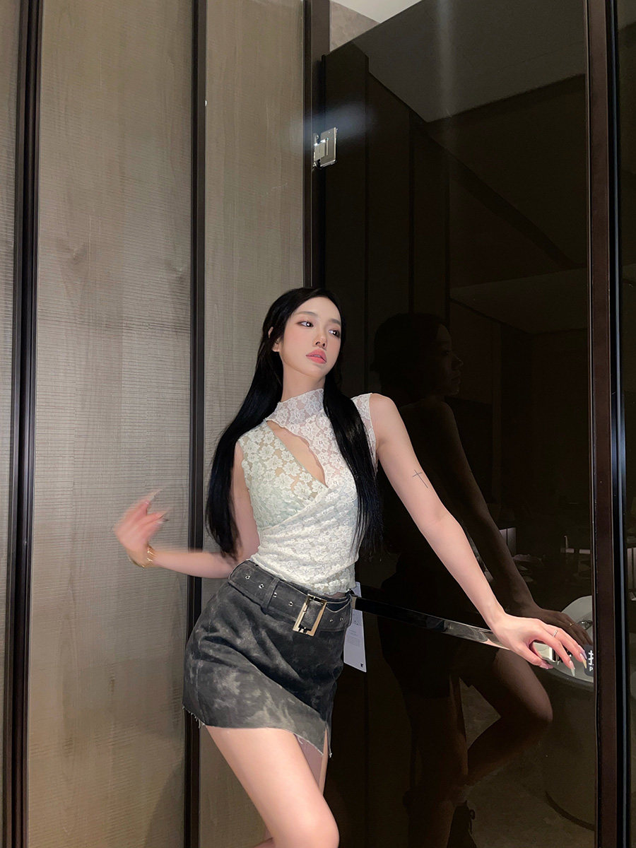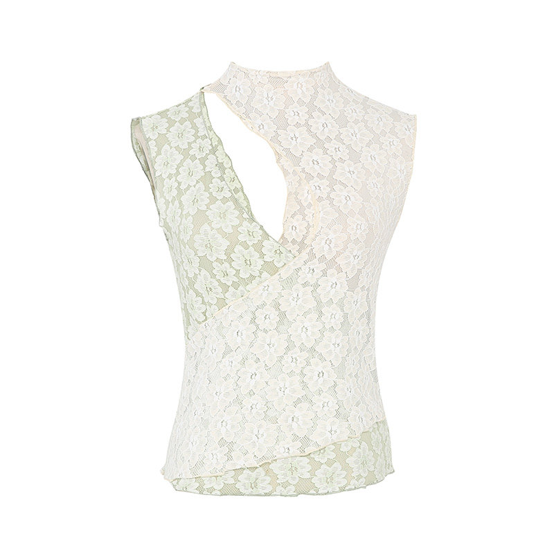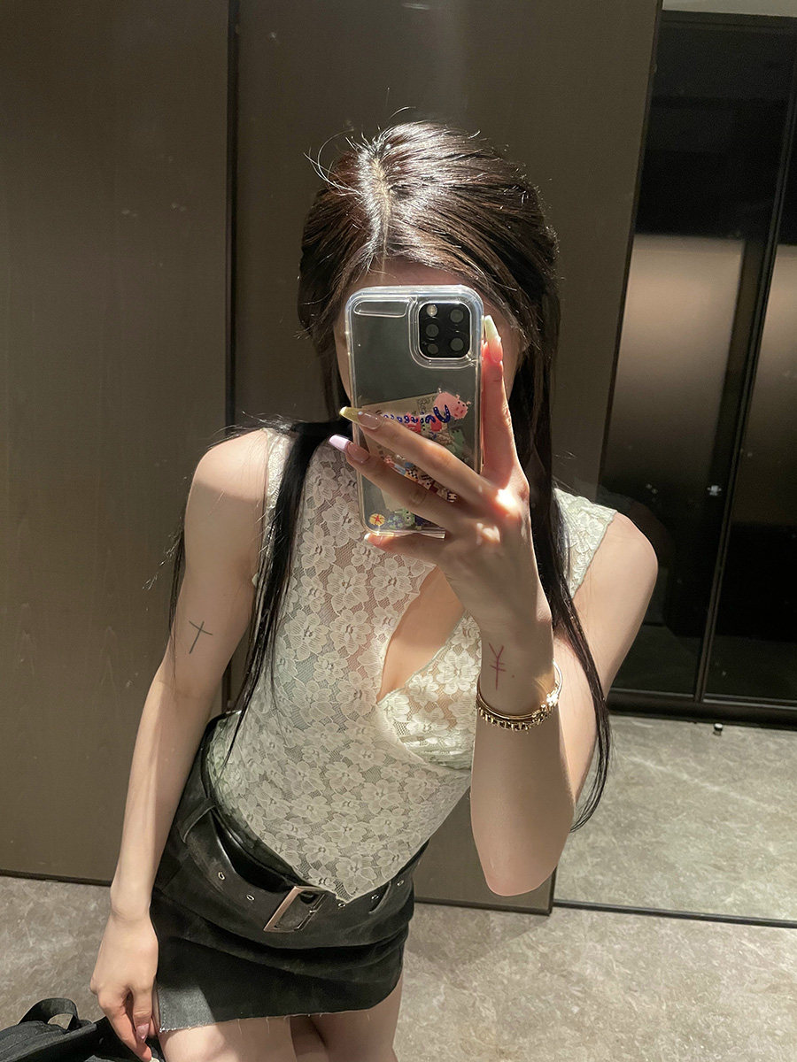 (La lune Du Ciel) LLDC Crochet lace small vest women's early summer sexy sleeveless top