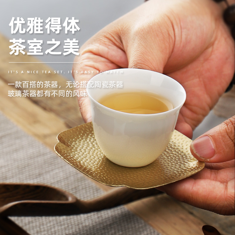 Japanese copper Teacup Coaster Tea saucer Kung Fu tea cup holder Copper cup holder Tea holder Anti-hot insulation pad Tea ceremony accessories