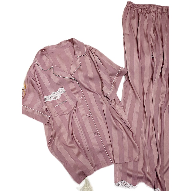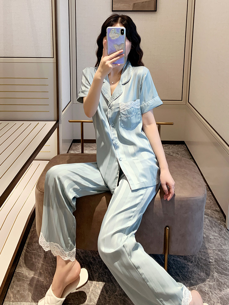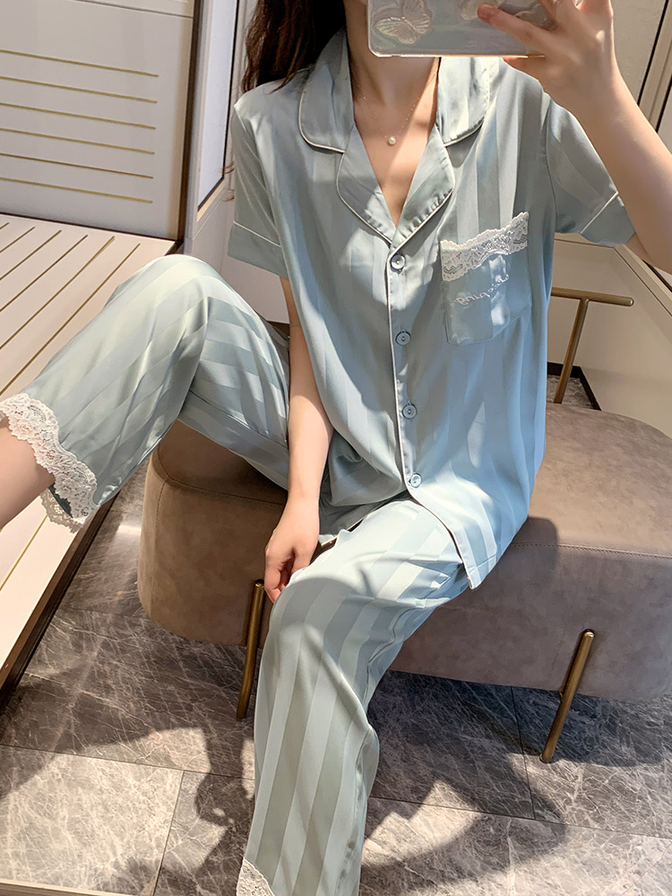 Short Sleeve Long Pants Lace Jacquard Striped Turmeric Short Sleeves Long Pants Lace Jacquard Striped Lake Blue Short Sleeve Long Pants Lace Jacquard Striped Taro Purple