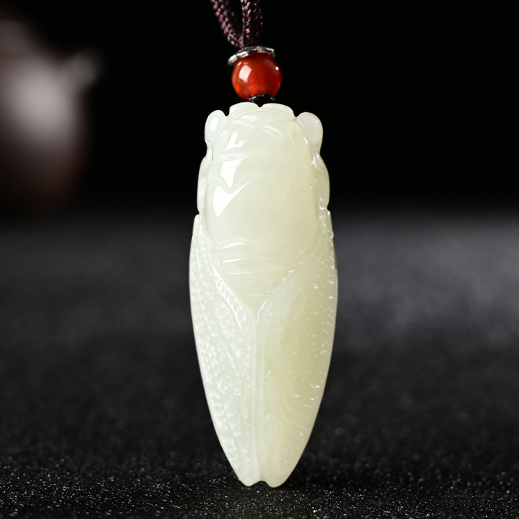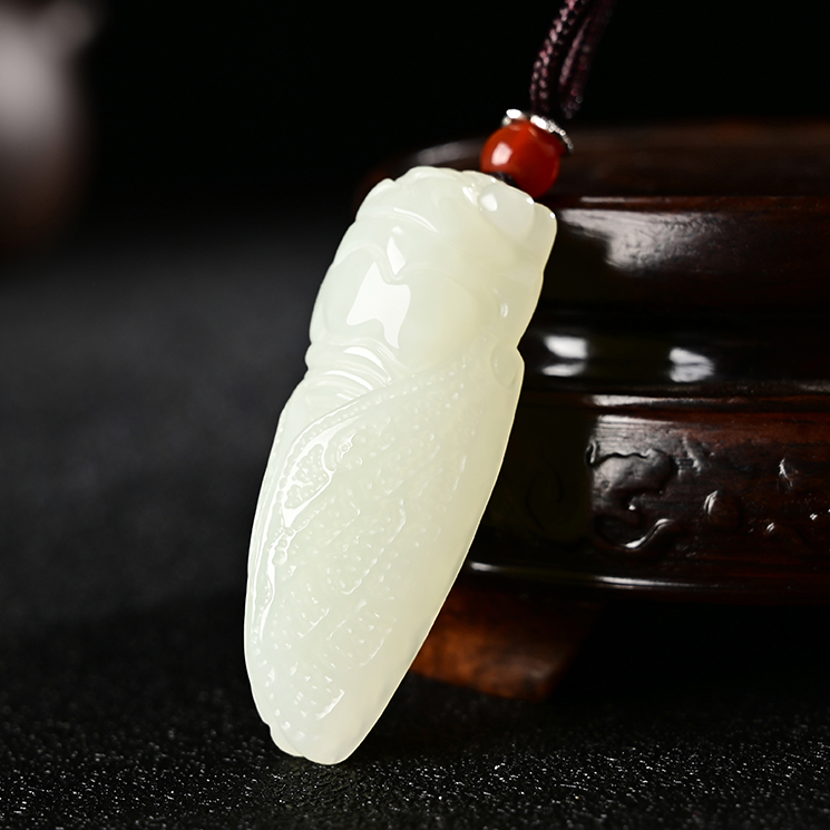 Hetian jade white jade pendant pendant men and women natural jade necklace blockbuster pendant jade pendant golden cicada