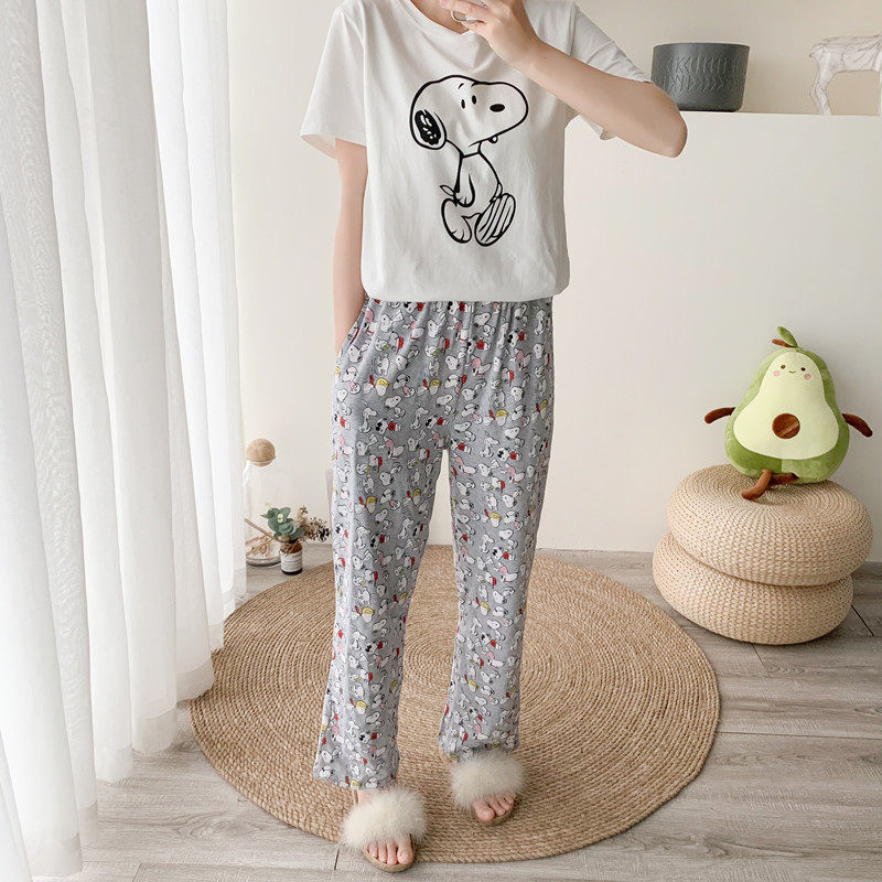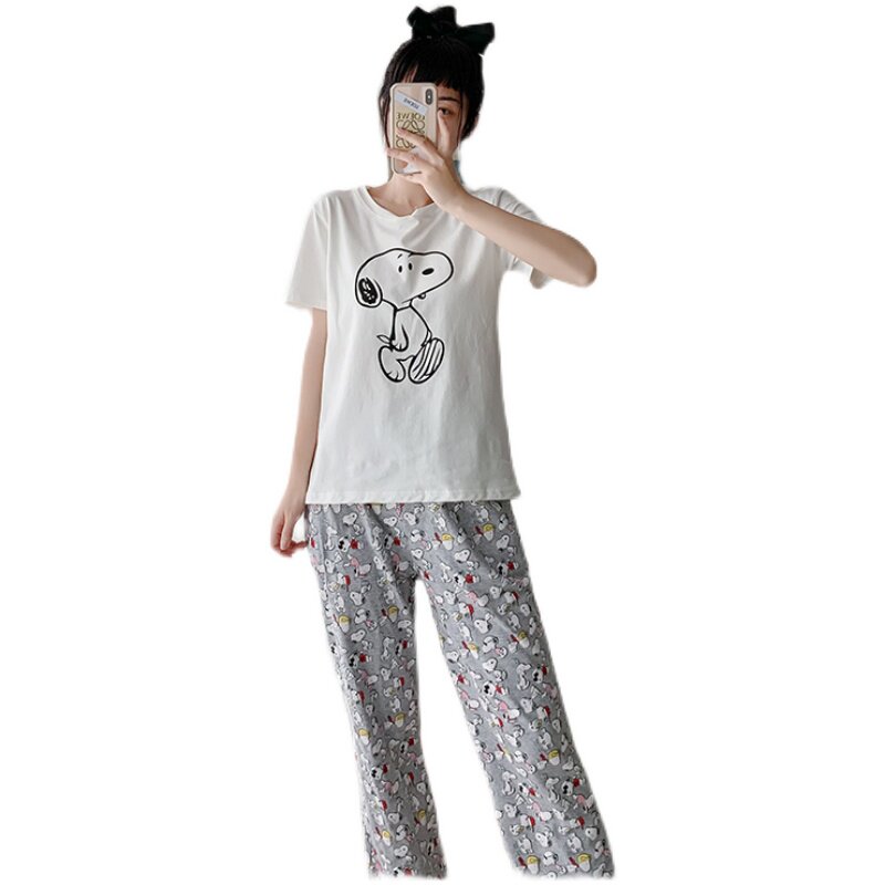 Pajamas women's summer short-sleeved trousers cotton cartoon Snoopy cute student girl home service suit
