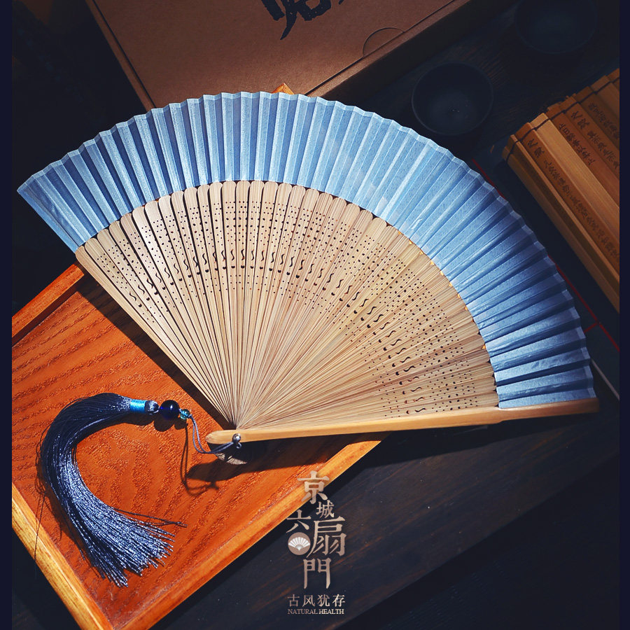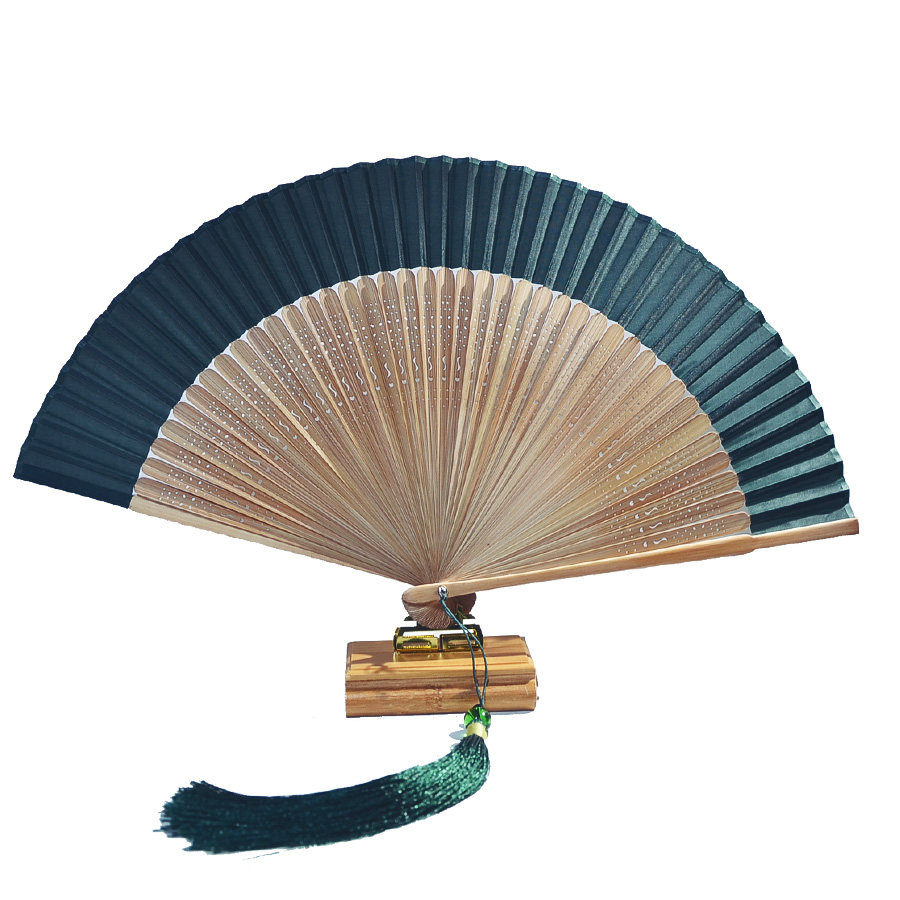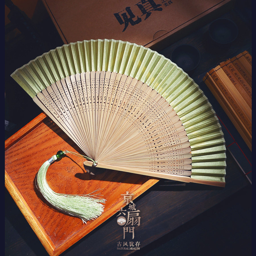 Pure color blank folding fan color rice white green China wind gusts 7 inch fold bamboo fan male and female silk busSummer