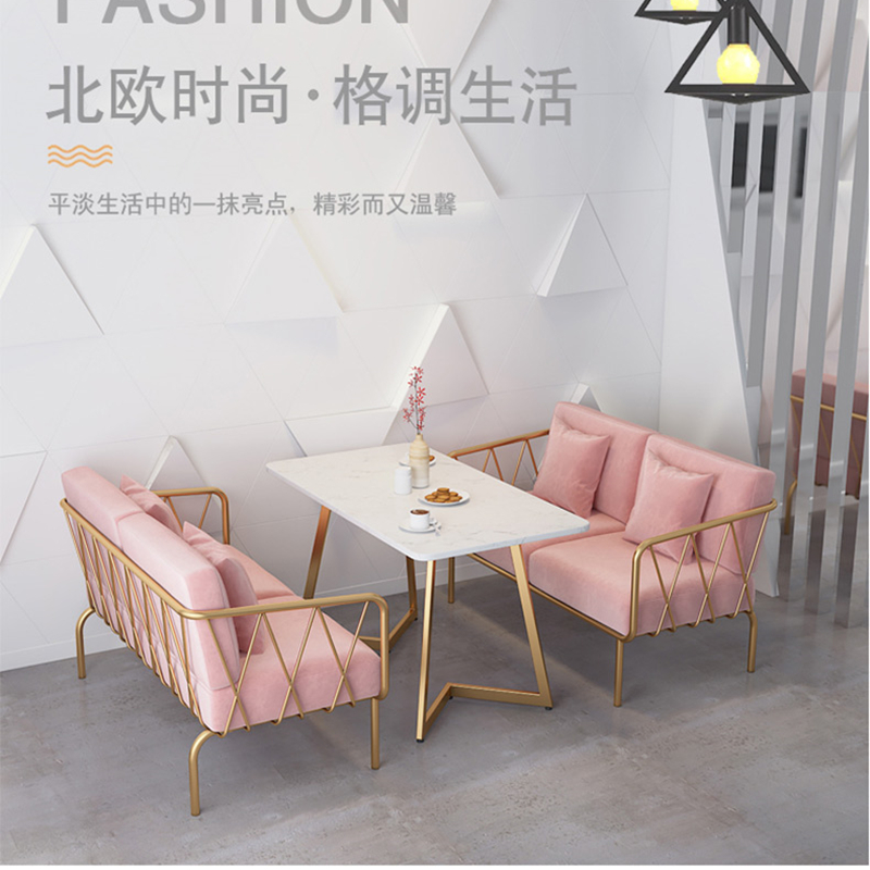Net Red Shop Double Sofa Café Café Cafeteria with table and chairs Combined milk tea shop Single cushion chair Rectangular Tea Table