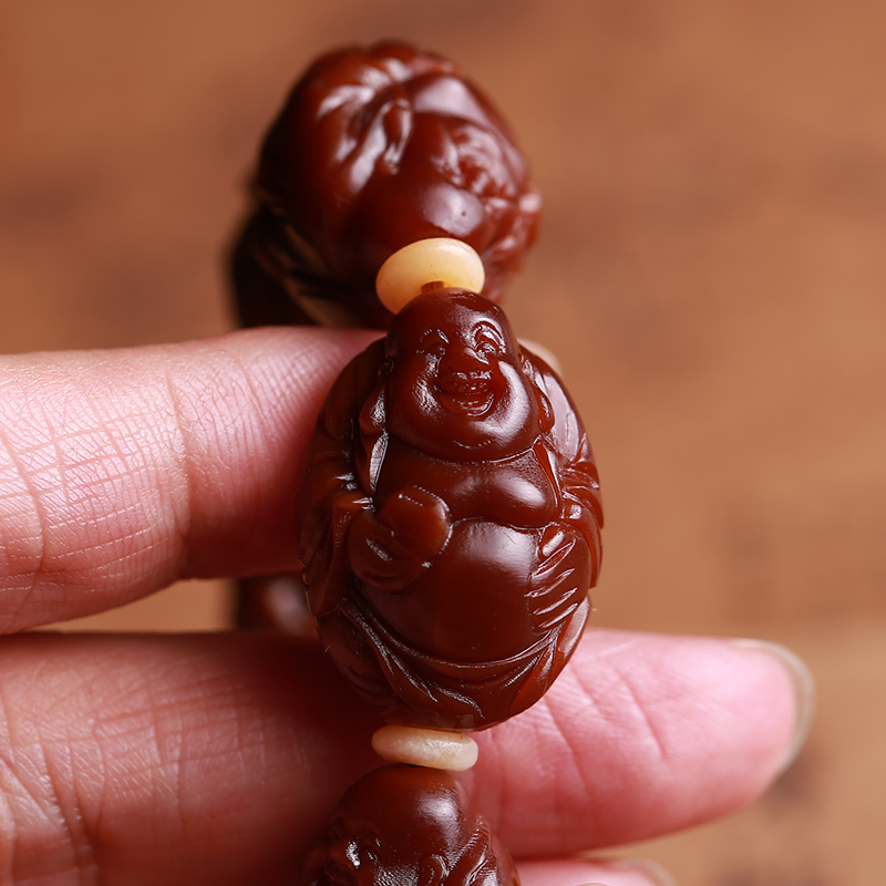 Jade olive core eight treasures Maitreya hand string Olive Hu core carved Buddha beads Hand chain Men and women play machine brush handmade Su Gong