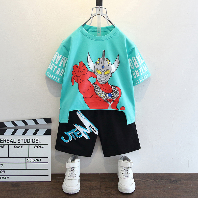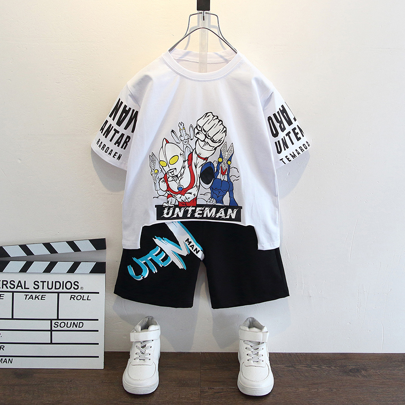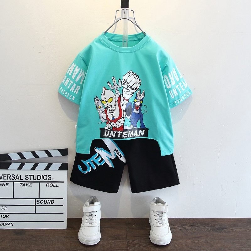 Ottman Clothes Boy Summer 2022 New Suit Short Sleeve Tide Handsome Boy Foreign Pie Children's Summer Clothes