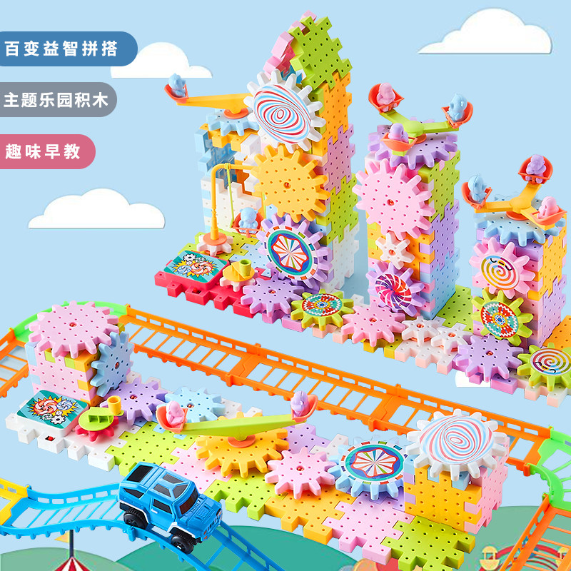 Children 100 Changed Electric Gear Puzzle Building Blocks Large Grain Assembled Suit Kindergarten Parquet Rotary Teaching Aids Toy