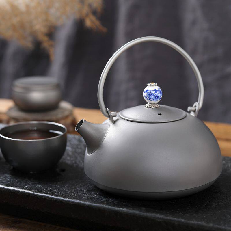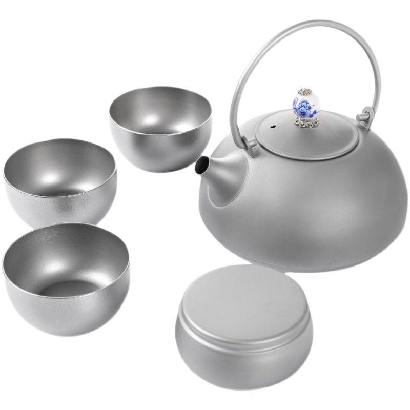Kangban pure titanium portable teapot travel tea set complete set of titanium cup titanium tea canister outdoor tea drinking portable handle pot
