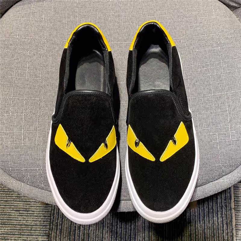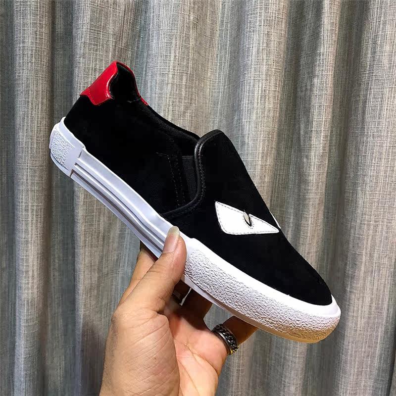 European Station Men's Shoes Genuine Leather Small Monster Eyes Sloth A Foot Pedal Lego Black Flat-bottomed Men Casual Board Shoe Tide