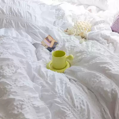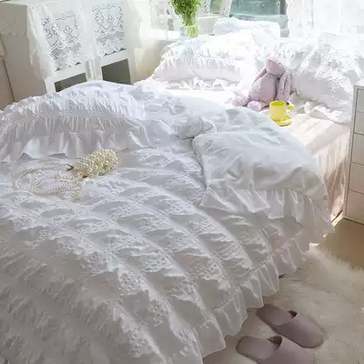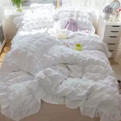 Net Red Princess Heart clean white bed waffle foam four-piece bed group breathable girls bedroom lace quilt cover