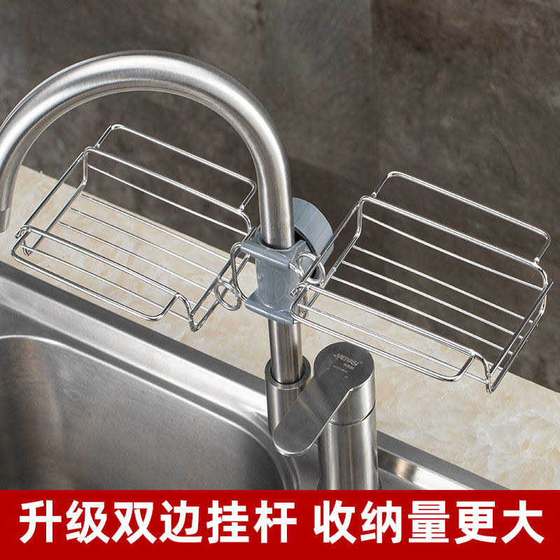 Faucet shelf Stainless steel multi-function kitchen supplies storage artifact space-saving sponge rag drain rack