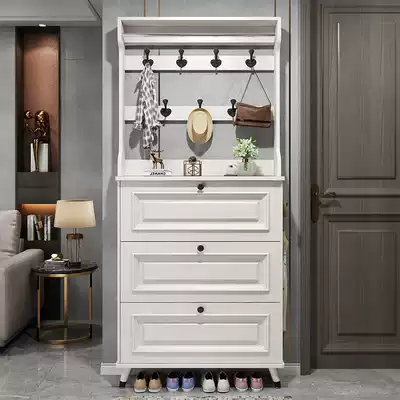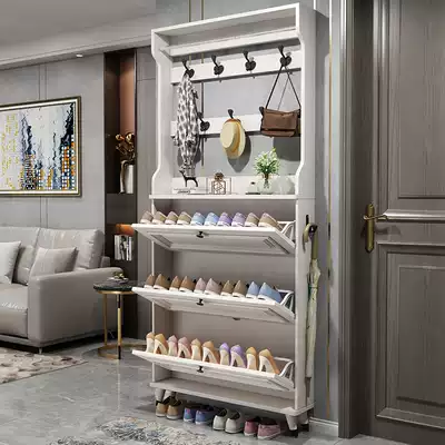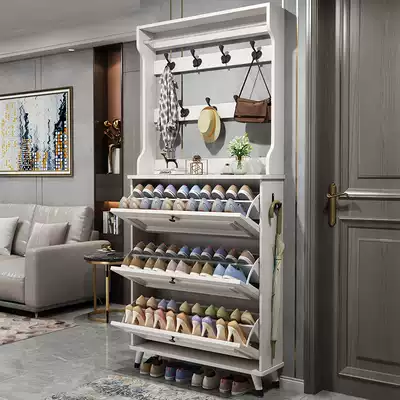 American ultra-thin dump shoe cabinet with hanger Large-capacity entrance cabinet door household space-saving solid wood leg shoe rack