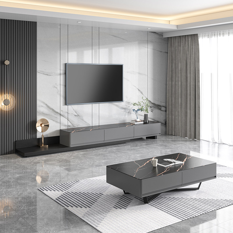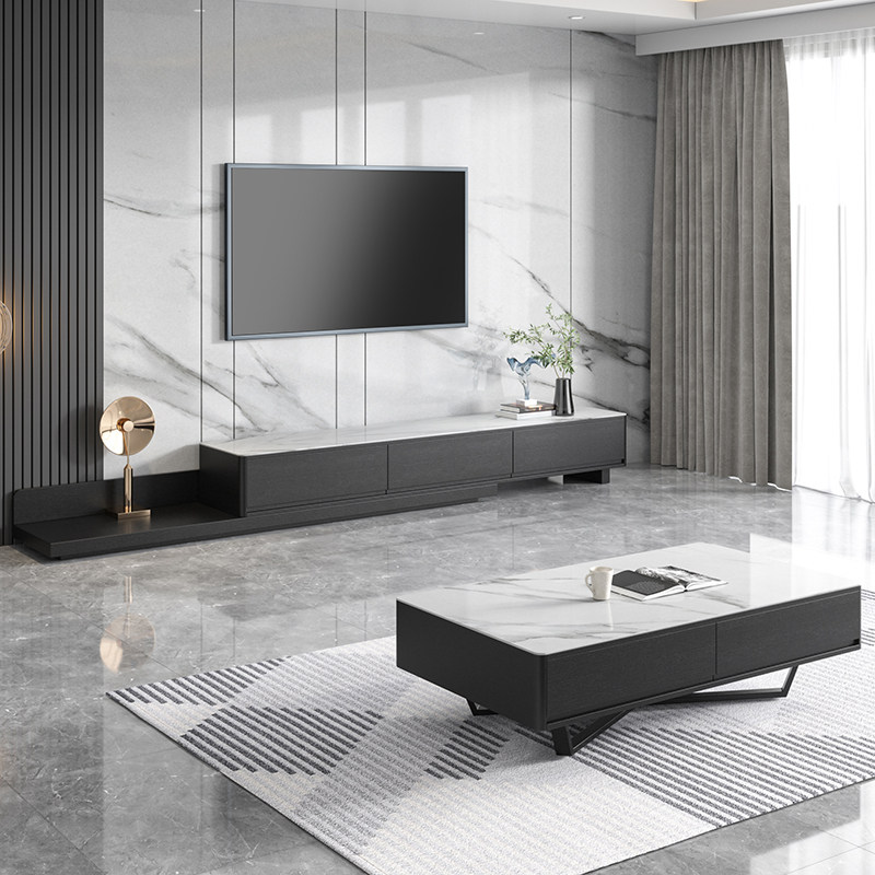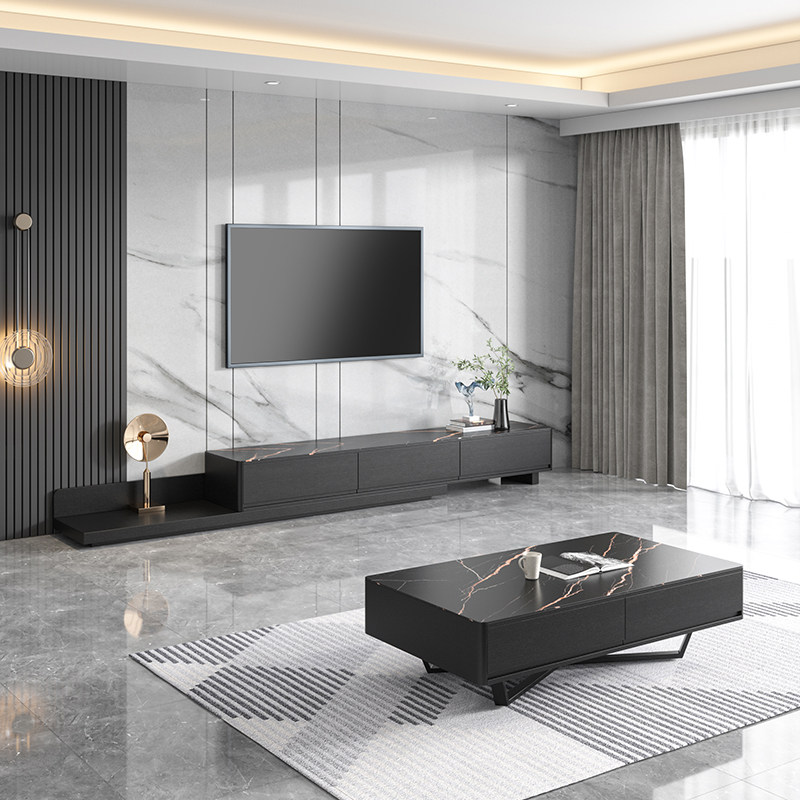 Slate TV cabinet coffee table combination Nordic modern minimalist retractable walnut color TV cabinet small apartment floor cabinet - Taobao