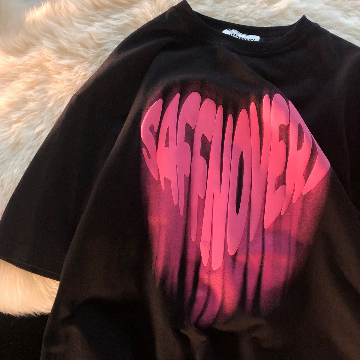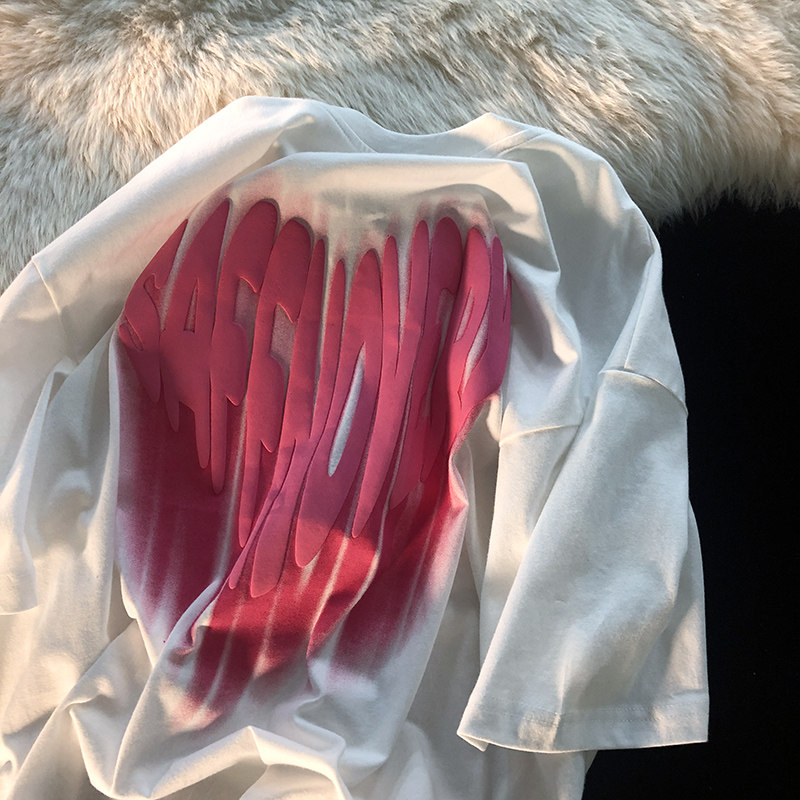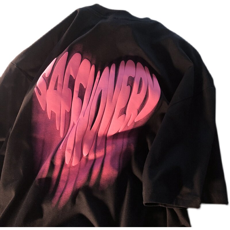 Hong Kong tide brand letter love printing short-sleeved T-shirt men's summer National tide loose crew neck couple top T-shirt tide
