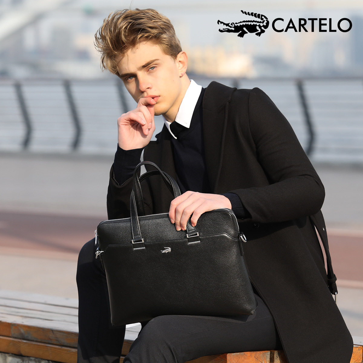 Cardiole crocodile high-end men's business handbag casual hand leather bag briefcase shoulder messenger bag tide
