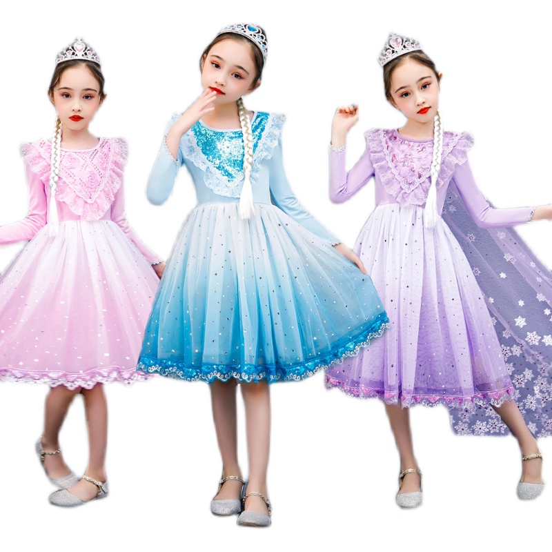 British NextElsa girl's dress 2022 spring autumn new ice chic edge foreign pie mesh yarn long sleeve princess dress